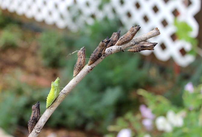 про цветы ты, конешно, права - они должны украшать и радовать. и усе. Вот еще вдогонку - жду  (это не все, просто на одну палку накукликось несколько. прикольно.) Кстати, у одной бабочки левые крылья слегка деформированы - это моя вина? Переложить что ли всех младенцев в бОльшую емкость? И еще - выпустила из вот, но они еще не летают. Может, прибрать пока? не съедят их? Да и дождь собирается  Посказывай скорее