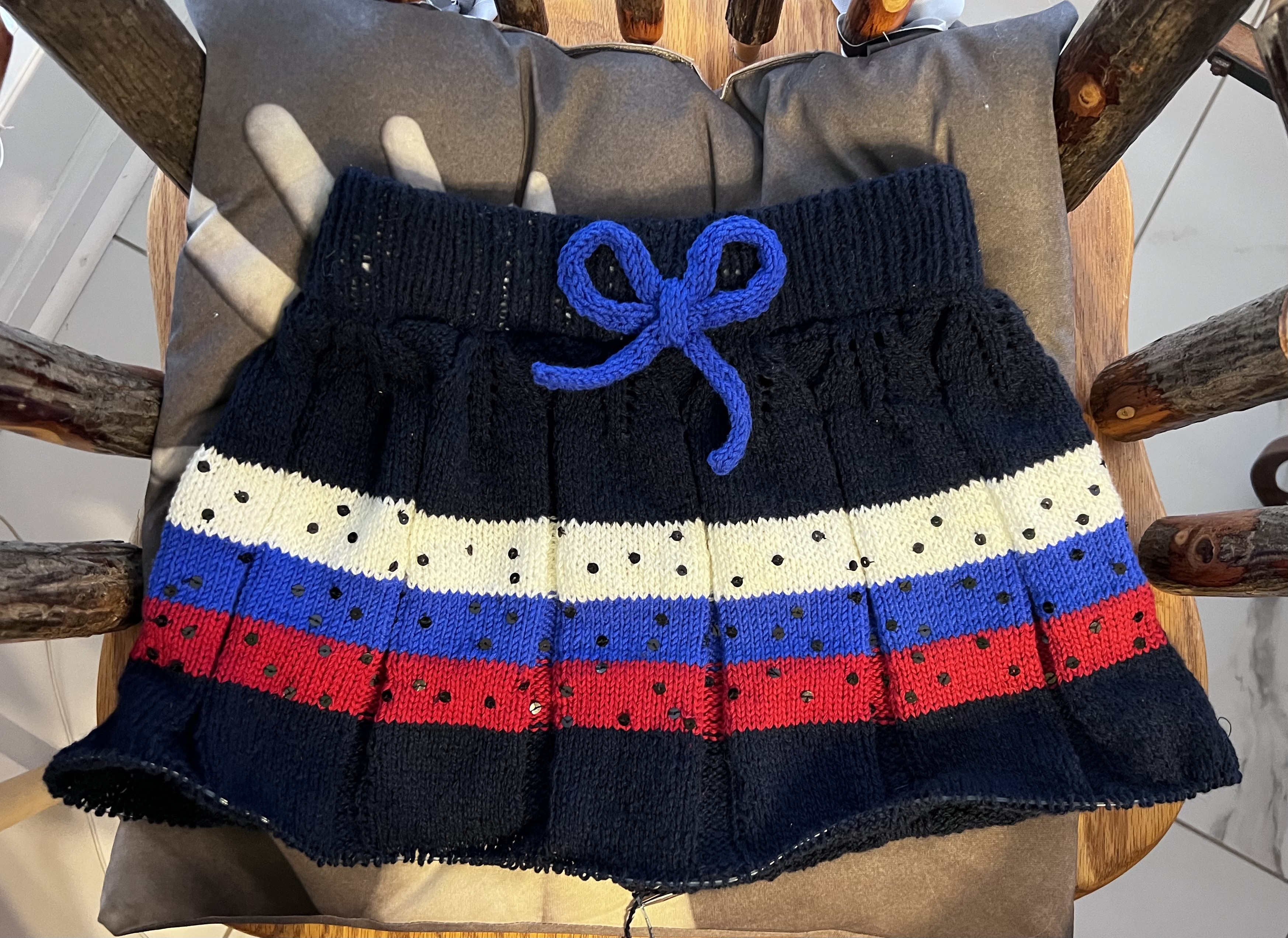 Довязываю юбочку внучке, слегка патриотическая получилась!  запощу здесь, в рукодельную никто не ходит..