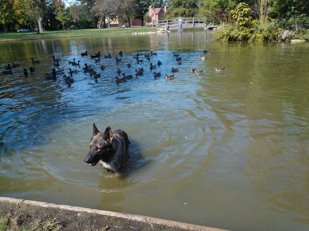 Гуляли сегодня с подружкой и собаками. Вот такая у нее собака)))) За 2 часа поплавал во всех водоемах парка)))) Сам плавает - уток не трогает) А вот белку одну поймал - еле успели вытащить из пасти - а то бы точно съел)