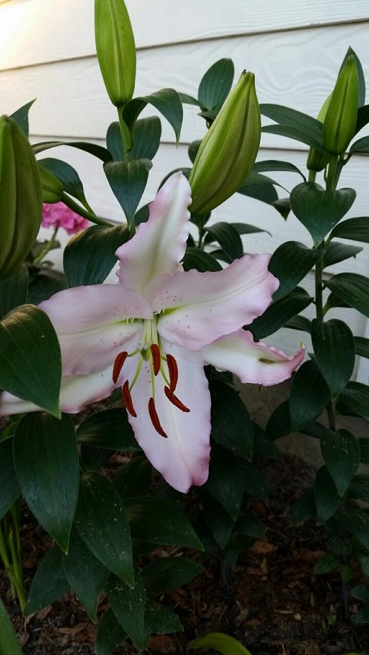 Baylee писал(а): У меня тоже радость: лилии зацвели! Бело-розовая (если не видно на фото)... как и было обещано Волмартом  о акая красотка! у меня уже по хруть некоторые и выше...и еще не вечер, судя по размерам бутонов. Другие пониже намного и уже цвет проглядывает. Скоро порадуют все ух!