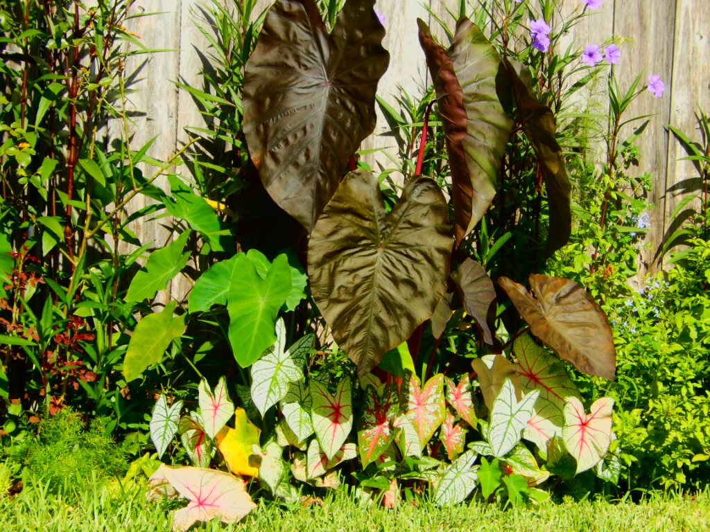 Джакси, какое там у тебя буйство красок! Я Слоновьи Уши тоже люблю... только они распространяются с бешеной скоростью. У меня 2 зеленых, в этом году загнала в одноразовые контейнеры и закопала. Экпреримент