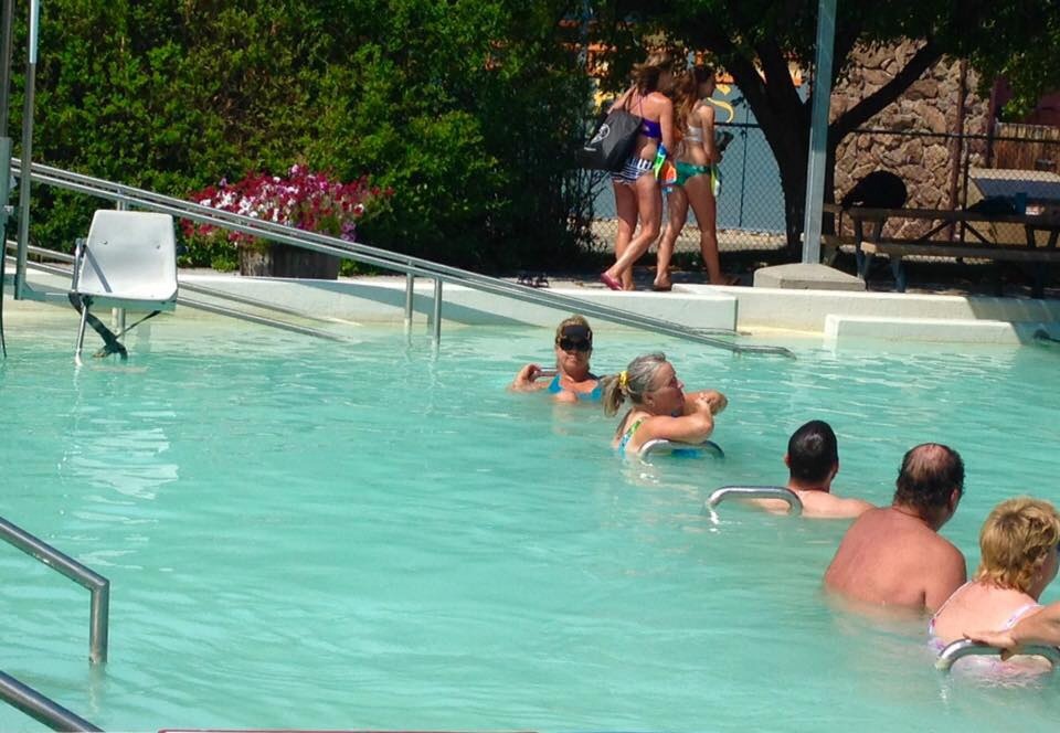 Девушки, случаются на свете чудесатые вещи! Я упоминала, что несколько дней назад повредила руку,порвала бицепс или сухожилие по время хайка в Zion, вытягивала попутчицу. Рука не поднималась ,хорошо,что хоть левая,в путешествии это ваще как-то не ко времени Сегодня в Вайоминге в городке Thermopolis ( все инвалидки - бегом ползите сюдой) в Hot Springs Nat. Park случилось чудо,20 минут в горячем вонючем бассейне - и рука поднялась,и все еще поднимается несколько часов спустя,хоть и не совсем все прошло,но на 90 %
