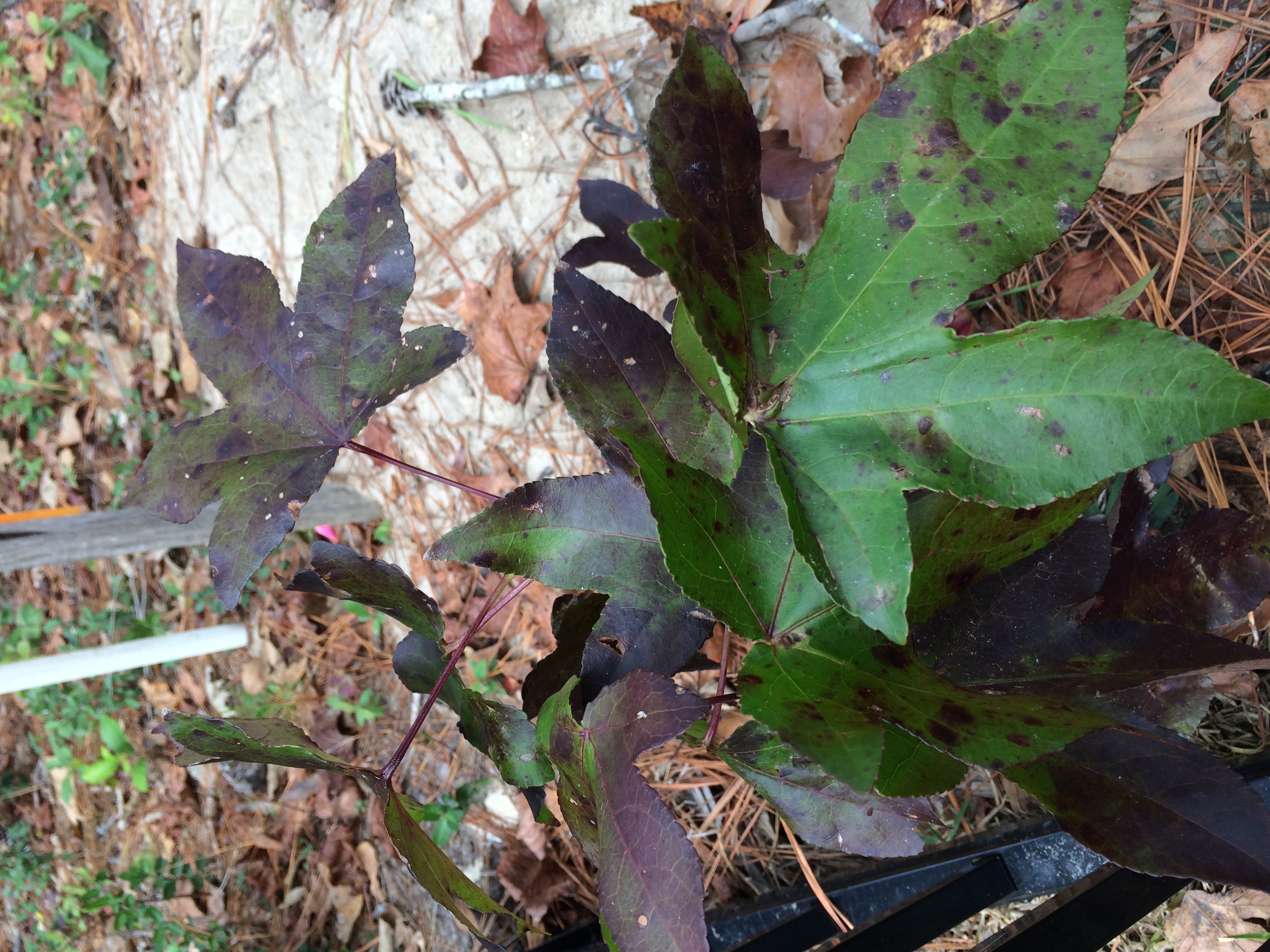 Если под ним валяются колючие шарики, то это не клен, а sweet gum, зараза еще та, именно из за этих шариков и поросли из корней далеко от ствола.