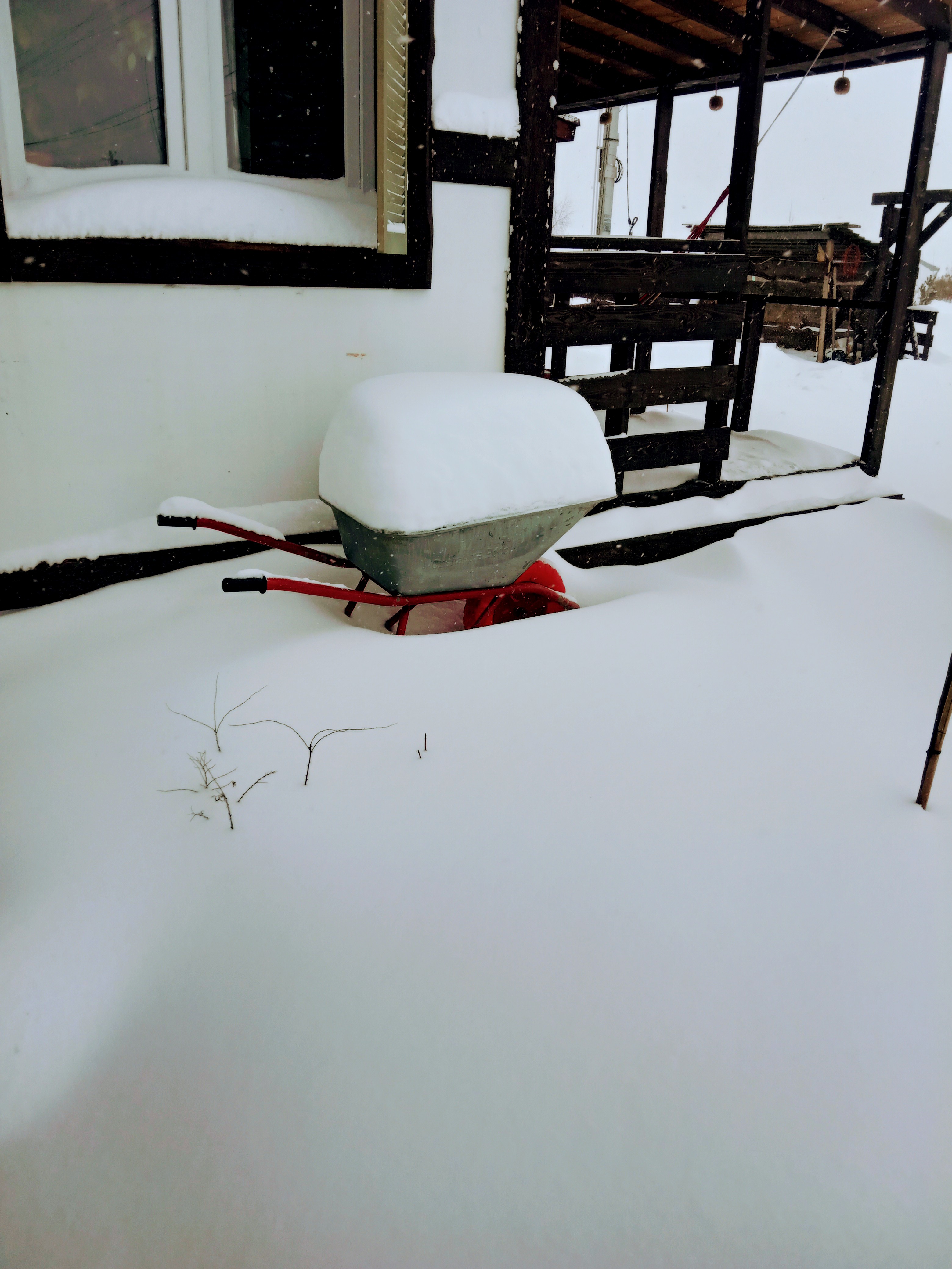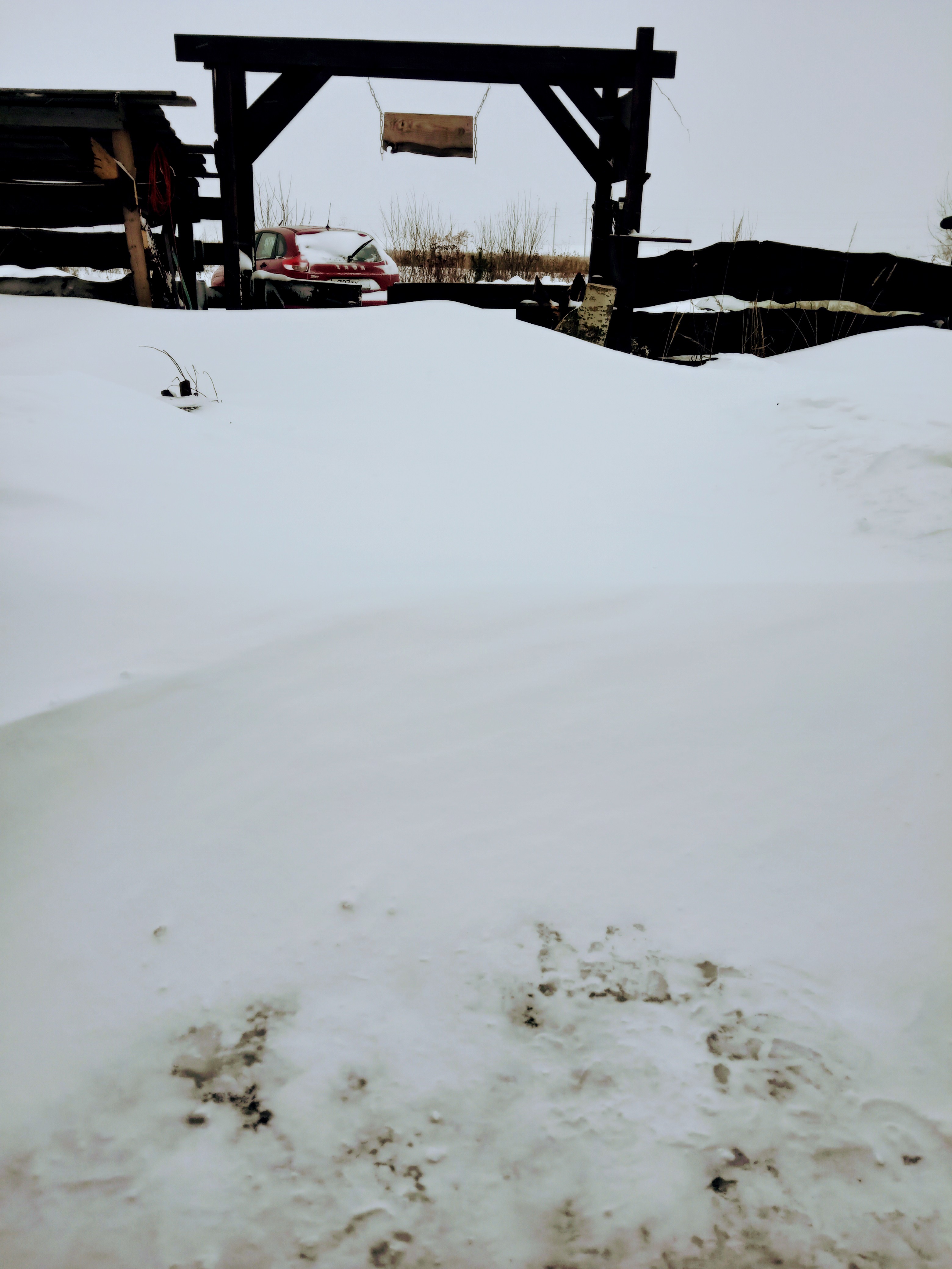 Откапывал машину часа два, пару раз застряла, побросала лопаты, это ужас какой то))) Думаю ладно все равно вся в снегу, гляну что же сзади дома. Пробралась на задворки, по пояс, а тааааам...ляпота апокалИпсис