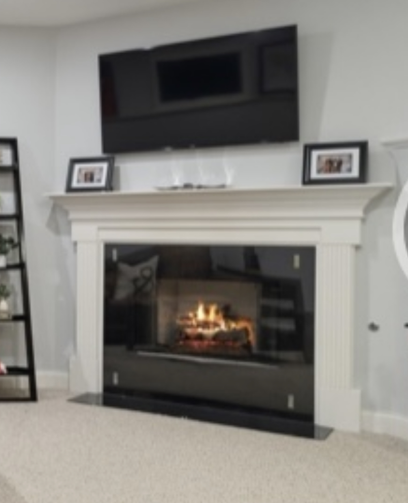 думаю что просто для того чтоб цвет изменить. черный действительно был «focal point” . в подвале там еще есть газовый камин. наверно так же выглядел в ливин рум