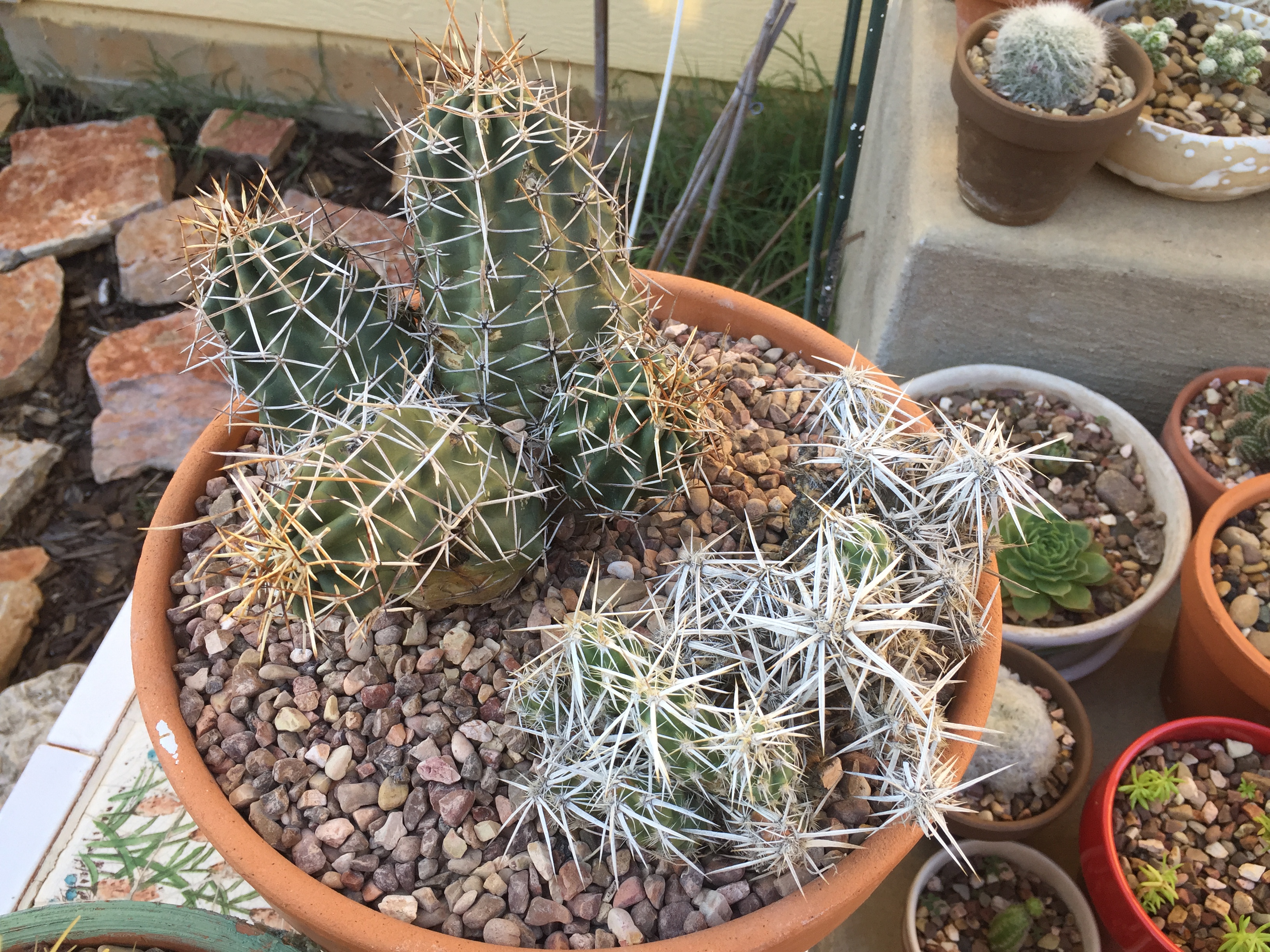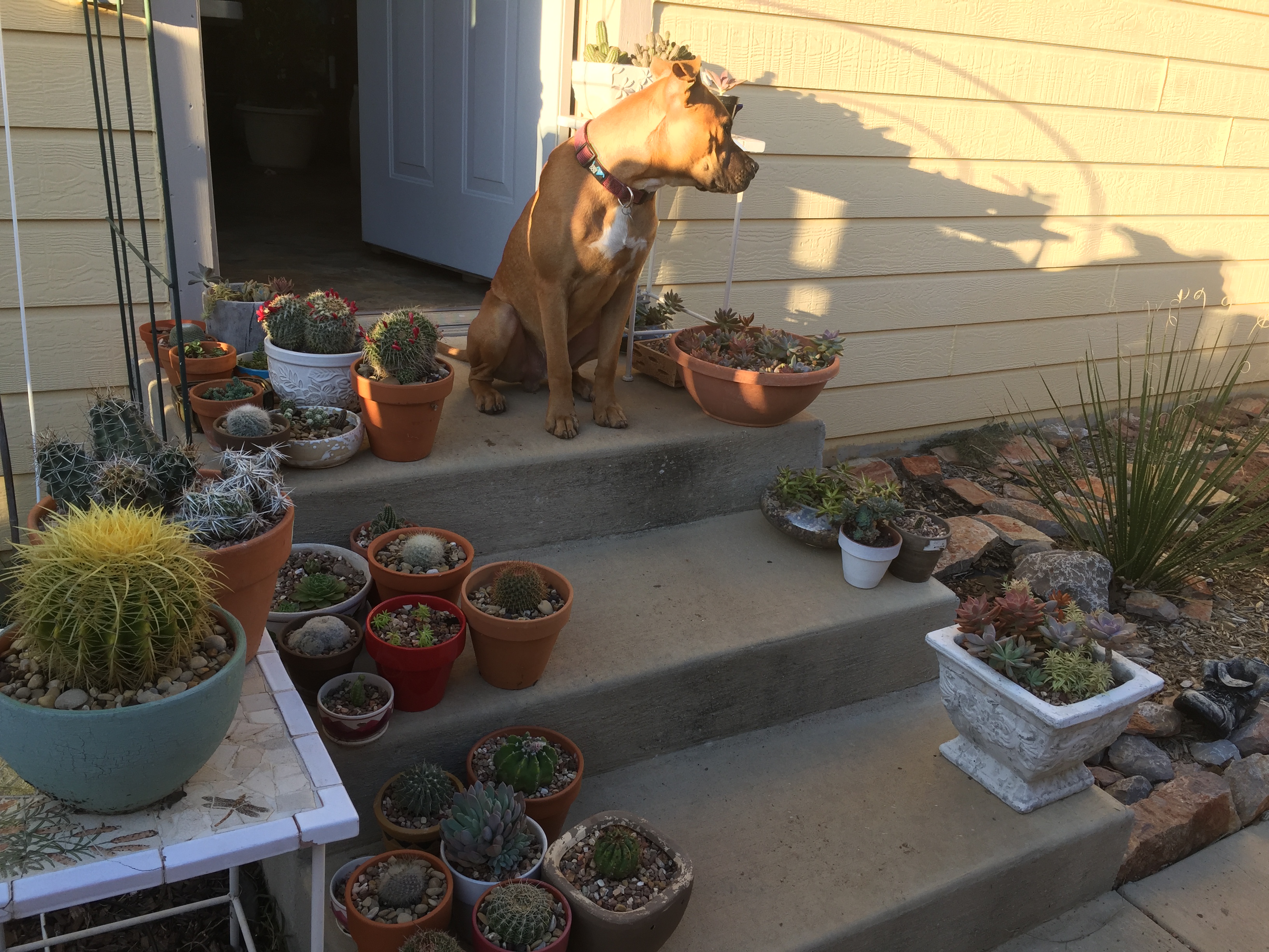 Baylee писал(а): Хом, что-то ты давно нам свои кактусы не показывала Berizka писал(а): Да, ОклаХома, показывай какты. У меня очередной сдох. Всё, не дружу с ними больше. Зато впервые удалось укоренить листик фиалки, уже новые пускает. Да что-то то некогда, то совсем некогда  Заглядываю, но бегом все. Вернулись из Альбукерке только что, привезла несколько какт, из дикой природы, так сказать. Точнее, из заброшенного карьера. Надеюсь, тчо они вполне себе харди и высажу их после зимы на улицу, но сейчас вот пока решила в горшок - все же заморозок вот уже случился, хочу поберечь их, дать корням окрепнуть. Две плошки - это моя добыча В какой-то сувенирной лавке увидела телегу с опунциями и здоровенным Barrel cactus, пошла хозяйку спросить, не продаст ли кусок. Она не захотела его травмировать, он у нее много-много лет уже, но послала меня как раз на тот пустырь - говорит, там много и никому не нужные и можно выкопать. Поехали тудой  Кусты всякие по колено сплошным лесом, хорошо, что в багажнике у меня были snake gaters, а то было бы страшновато там ходить. Ну вот и это те кактусы, которые мне там попались. Но тот, за которым приехали, встретился самым последним, когда я уже почти отчаялась  Тетка сказала, что они цветут красными цветами (что меня особенно порадовало) Поскольку заморозок пообещали нам до отъезда, пришлось все суки-каки затащить в теплицу, однако на ближайшие пару недель ничего не должно быть такого, поэтому опять повытаскивала  На крыльце пусть стоят пока, близэнько к теплице чтоп. Это не все, часть. Фотка телефоном в полумраке, пардон, мало че видно. Однако вчерашняя. Березка, какты же такие выживалки-неубивалки, попробуй еще!  Поздравляю с фиалками! показывай, как цвести будут.