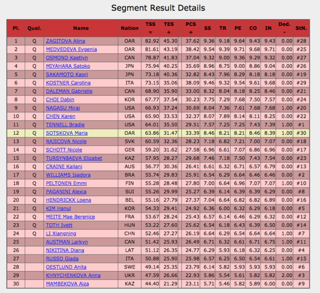 Алине зажали компы, позор судейству. Прекрасные прокаты выдали Сатоко, Кейтлин. Жаль, что не получилось у Маши и Каролины. Каролина решила выйти из борьбы, в каскаде сдвоила второй прыжок, а потом еще и нечеткий выезд. Кейтлин крепких нервов завтра.