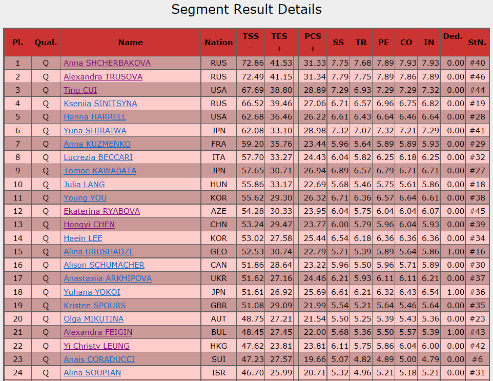 Стася вторая, не лучший ее прокат был, Маша Сотскова седьмая, посмотрим, что будет завтра.
