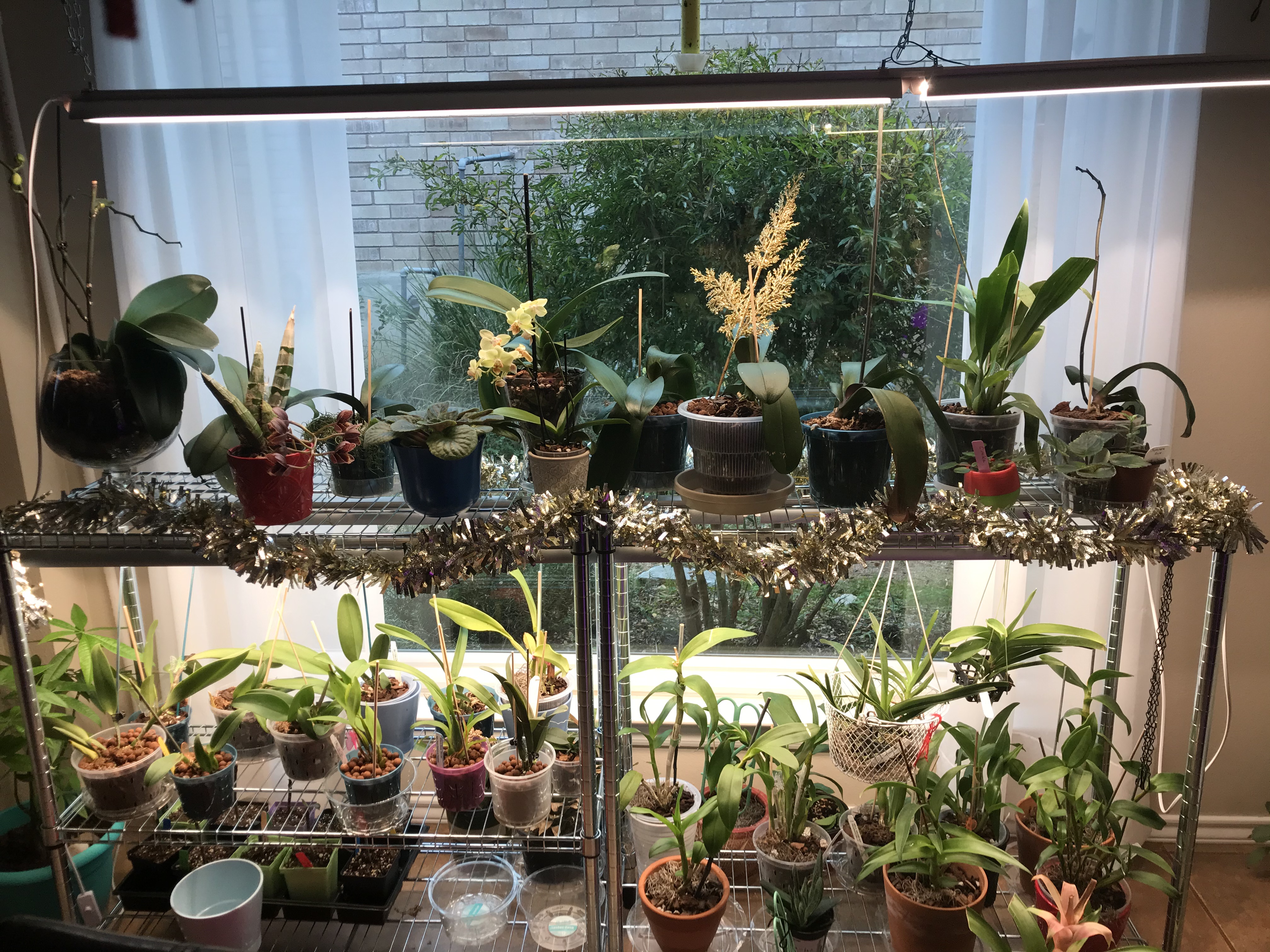 Adolocha писал(а): HELENKA писал(а): Фалики почти все стрелки выпустили, но не знаю от грибов или от хорошей подсветки. А вот Ванды дружно закуклили корни, хотя я им слабее раствор делала. Хотя опять же может и не от грибов, а от того что переселила их с улицы в дом. Так какие лампы ты оставила в итоге? Похвастайся стендом! Так, по порядку. У меня три стенда, два с орхами и один с фиалками, и реанимашек там держу. Лампы https://www.amazon.com/dp/B07WRQ868K/re ... 6DbR4N35JP и такие же 2 f. Комбинировала по длине стеллажей, они очень яркие, сужу по своим каттлеям, которые бурно пошли в рост. На фиалочном стеллаже они в один ряд, у орх в два ряда.