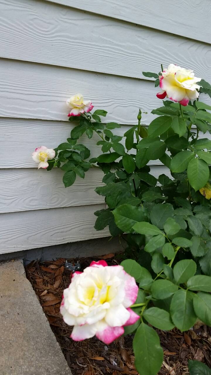 Всем дождям назло, можно полюбоваться на мою Дабл Дилайт  Одно фото на солнце, другое- вечером, после дождя. То ли она опять хочет "надуть" меня, толи содовый раствор подействовал как озверин на розы, то ли все-таки она одумалась и решила стать приличной розой... Склоняюсь ко 2ой версии, потому что соседняя с ней Синка (тоже хлебнувшая скандального растворчика) дала больше 10 бутонов (розе меньше года)... Лена, хоть ты и не любишь эту розу, я решила от бутонов не избавляться и сделать фото