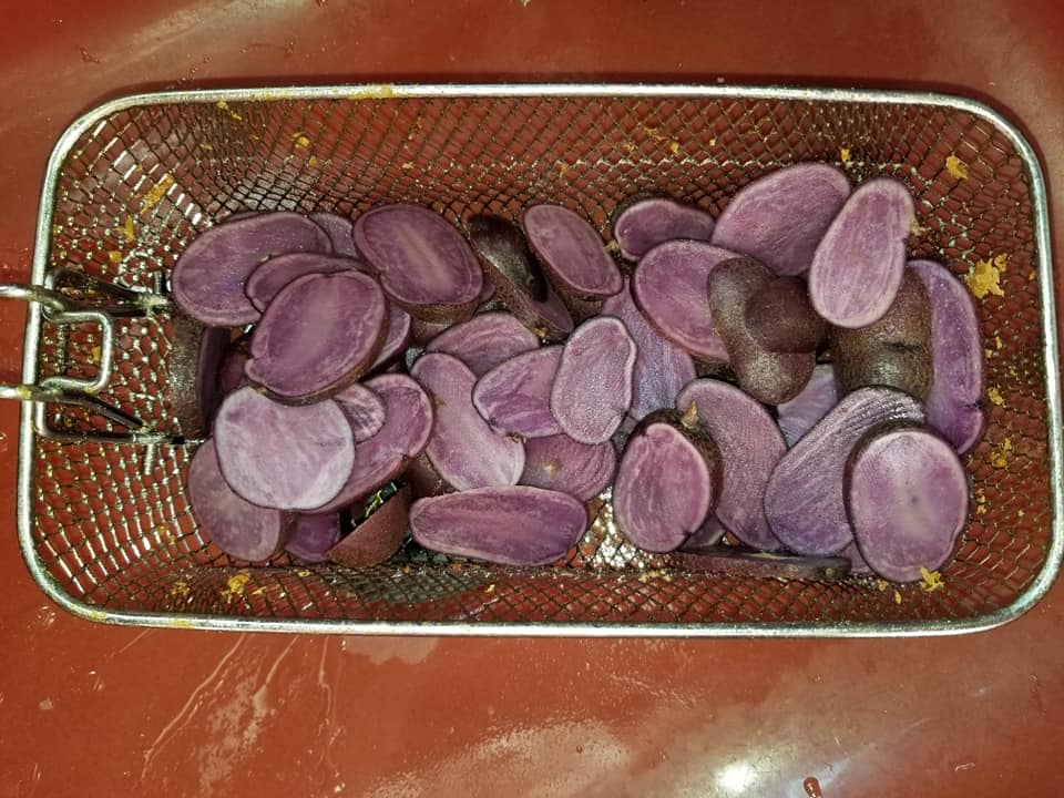Муж себе ужин готовит из мною выращенной органической картошечки.