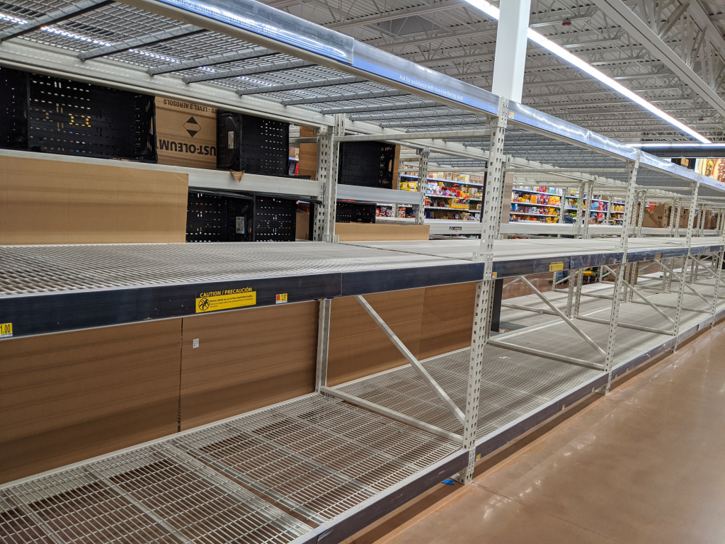 Муки и сахара в волмарте тоже нет  Полки с консервами полупустые.