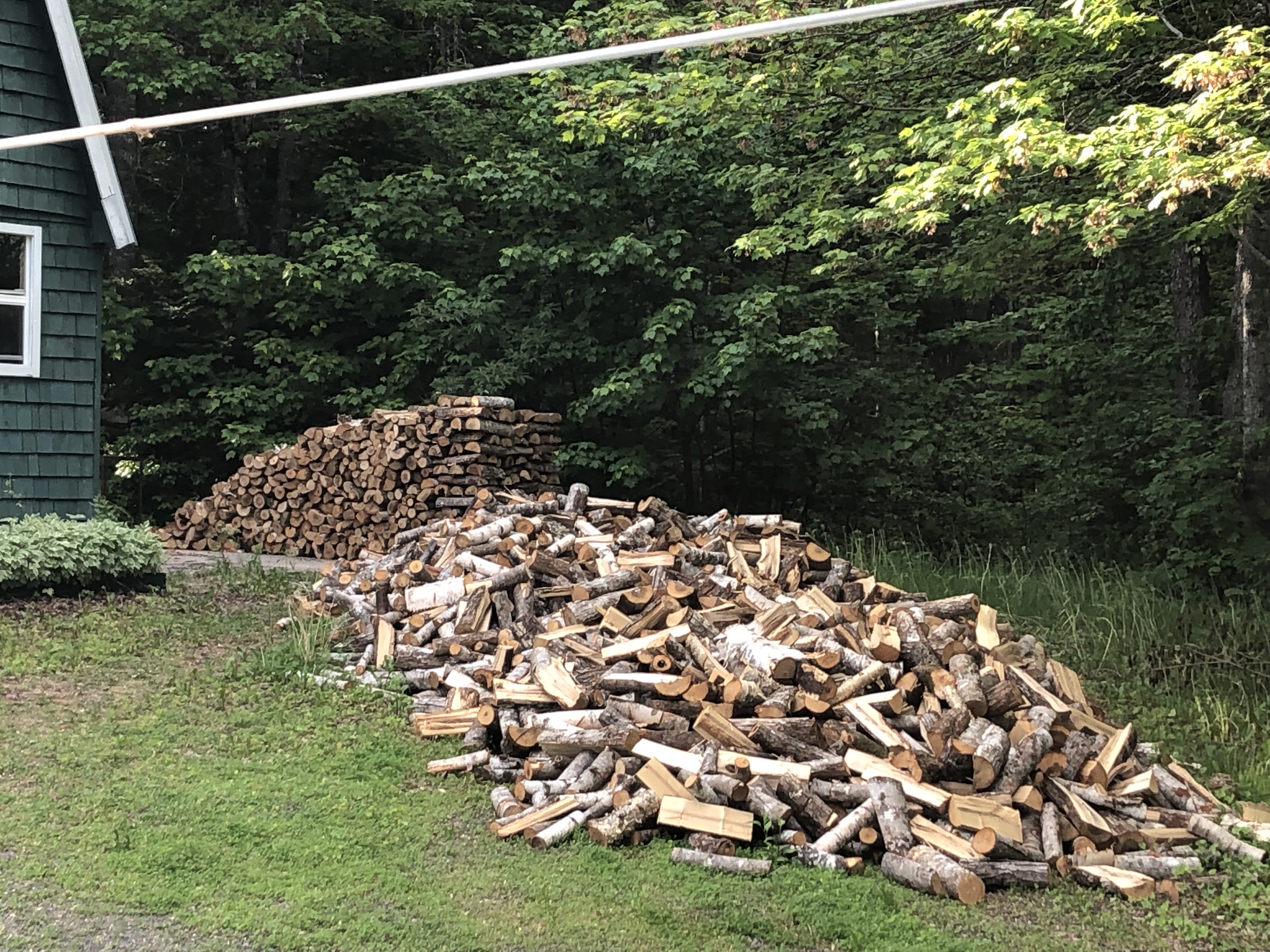 Муж укатил на две недели деньги зарабатывать. Я тут "савсем адын". От нечего делать решила помочь и сложить дрова в поленницу. Думаю, может за неделю справлюсь. Слабо - не слабо. Посмотрим. Вот результат на сегодня: