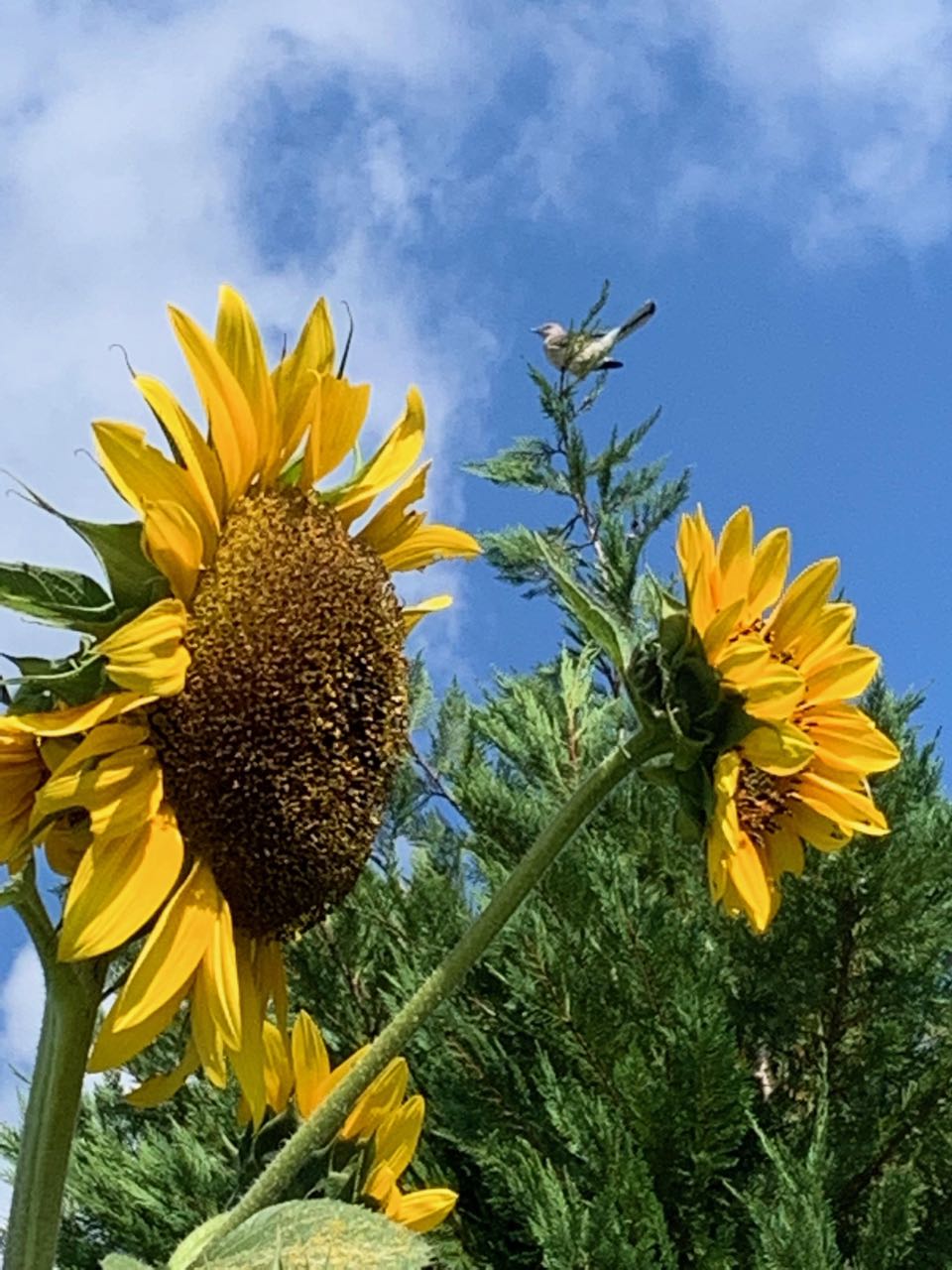 Jaxi писал(а): Как мне фиалочки мини нравятся!! У меня по-деревенски. Подсолнух цветет. А на верхушке туи-моя подружка сидит.Все так вокруг и вьется. Залетает на бэк порч,и чирикает, вызывает меня на трудовые подвиги! Бейли, наконец-то зацвели дей лилии. Цвет странный какой-то.Вроде, я более розовый покупала.  Ну да ладно, цветут и хорошо. Еще бабочка прилетела сегодня,я таких не видела раньше. Ну надо же, какой уже большой подсолнух! Красавец. У меня малыши совсем еще, под кормушкой лезут Подружка твоя вроде kak Mockinbird, а ты уверена, что она не пытается отогнать тебя?  Они очнеь протектив к своей территории, когда там гнездо. Могут нападать даже на людей, а уж кошки-собаки так им вообще не противники в этом деле Бабочку ищи не как бабочка, а как Moth. и по своему штату. Красивая! С дейлилями у меня тоже пересортица, купила яркого нового цвета, распустилась самая разобычная желтая, а ведь в магазине, не на остановке  У тебя красивый цвет!