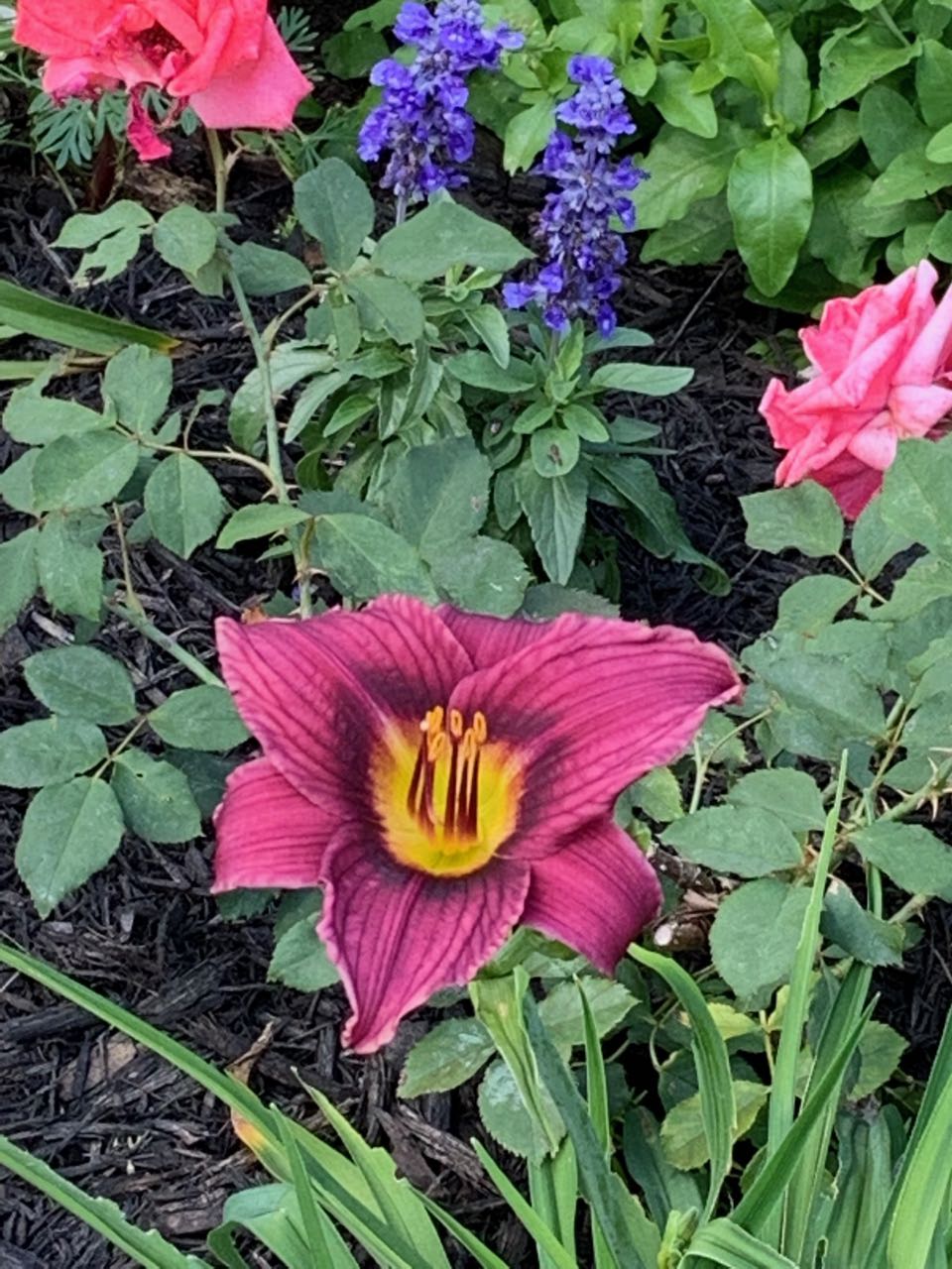 Как мне фиалочки мини нравятся!! У меня по-деревенски.  Подсолнух цветет. А на верхушке туи-моя подружка сидит.Все так вокруг и вьется. Залетает на бэк порч,и чирикает, вызывает меня на трудовые подвиги! Бейли, наконец-то зацвели дей лилии. Цвет странный какой-то.Вроде, я более розовый покупала.  Ну да ладно, цветут и хорошо. Еще бабочка прилетела сегодня,я таких не видела раньше.