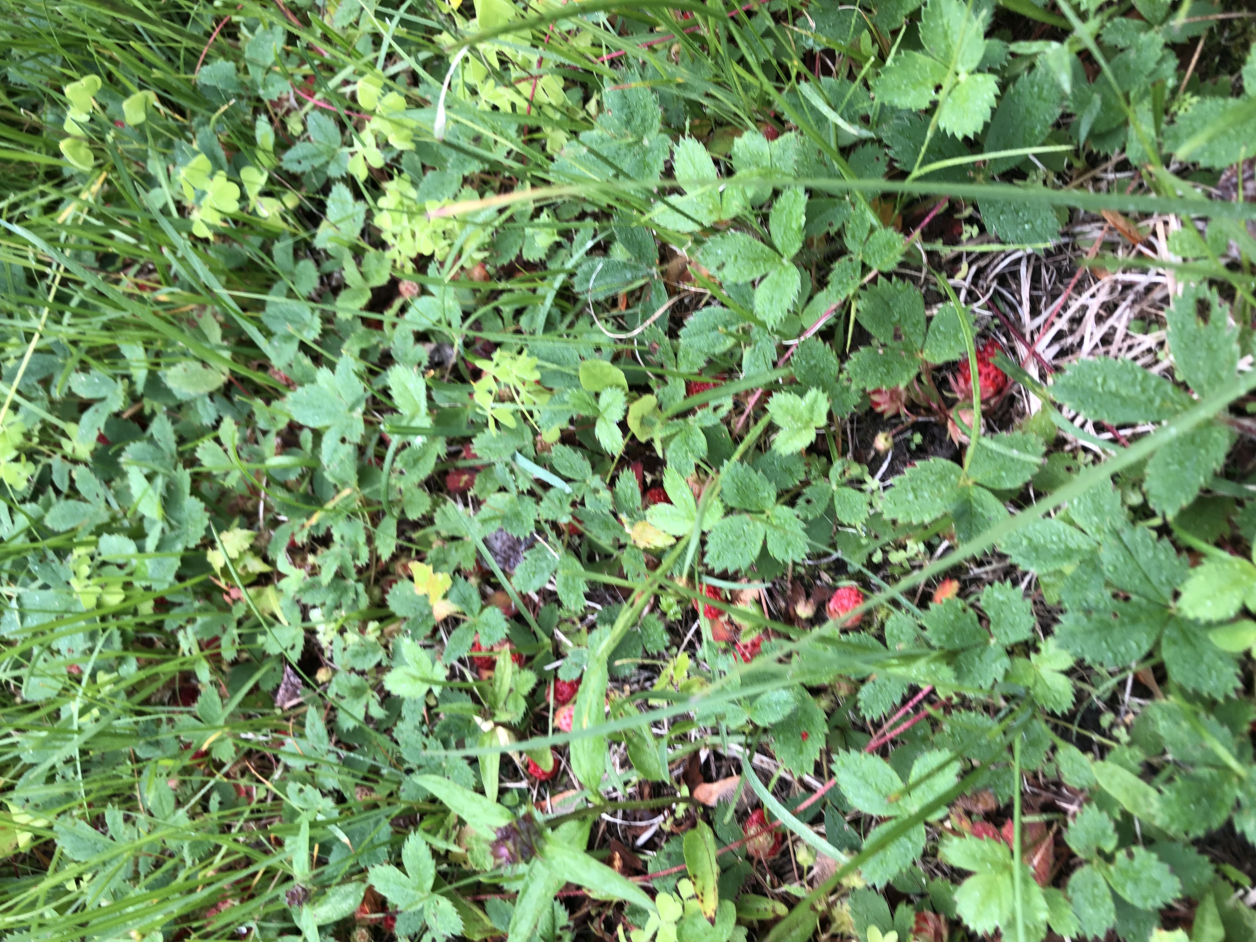 Сегодня неожиданно обнаружила, что земляника уже поспела. Ещё пару дней назад были только белые ягодки. Небольшая полянка в метрах 20 от дома. Там сотни ягод уже. У меня заняло минут 10-15 набрать это "лукошко"не сходя с места, но потом дождь и комары заставили бежать оттуда. Это я собрала гораздо меньшую часть. Большинство оставила перезревать, но уже в лом идти опять. Может завтра.