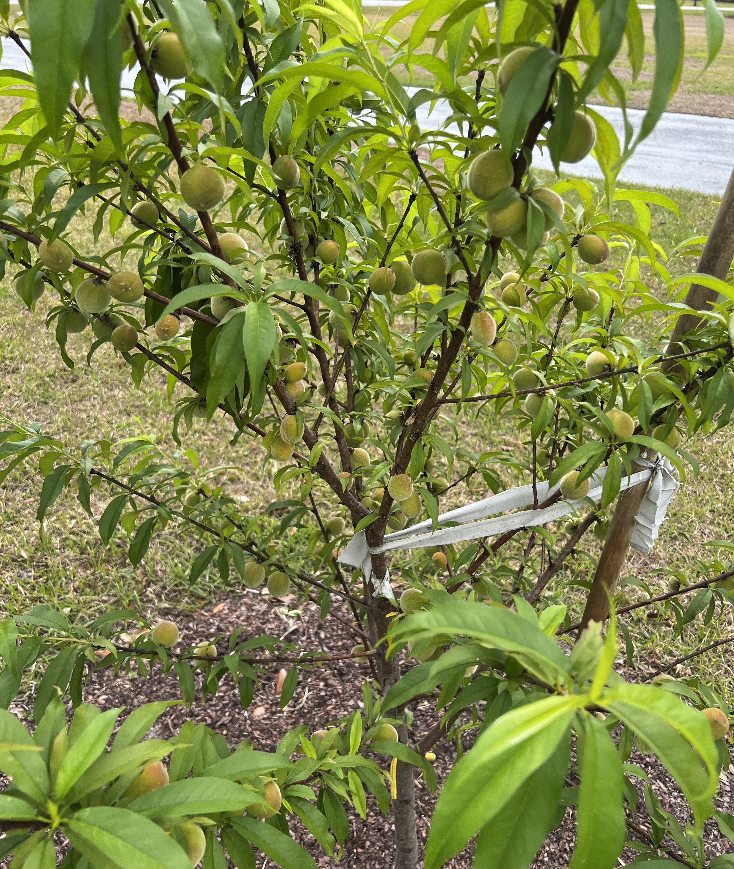 Персики - двухлетки стоят, все обсыпанные плодами. Что с ними сделать? Оборвать, или сами отпадут, по- моему —это неполезно для неокрепшей корневой системы. Кто знает?