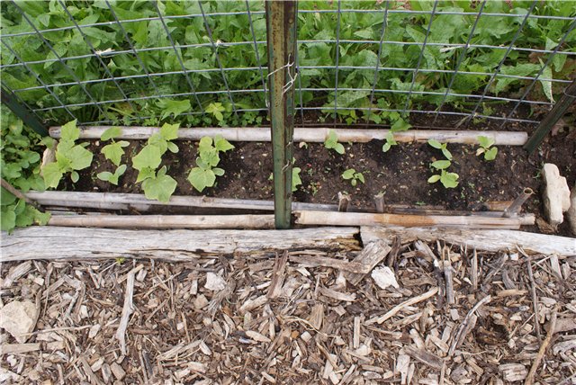 Andromeda писал(а): Девушки, как далеко огурцы друг от дружки сажать? Я сажаю на расстояние больше метра (даже полтора), но делаю лунки большого диаметра, а в них по 2-3 ростка оставляю. Думаю, что можно ближе. Побег огурцов прищипните (оторвите макушку) над примерно 5-м листом, и тогда огурцы будут куститься (пустят боковые побеги.