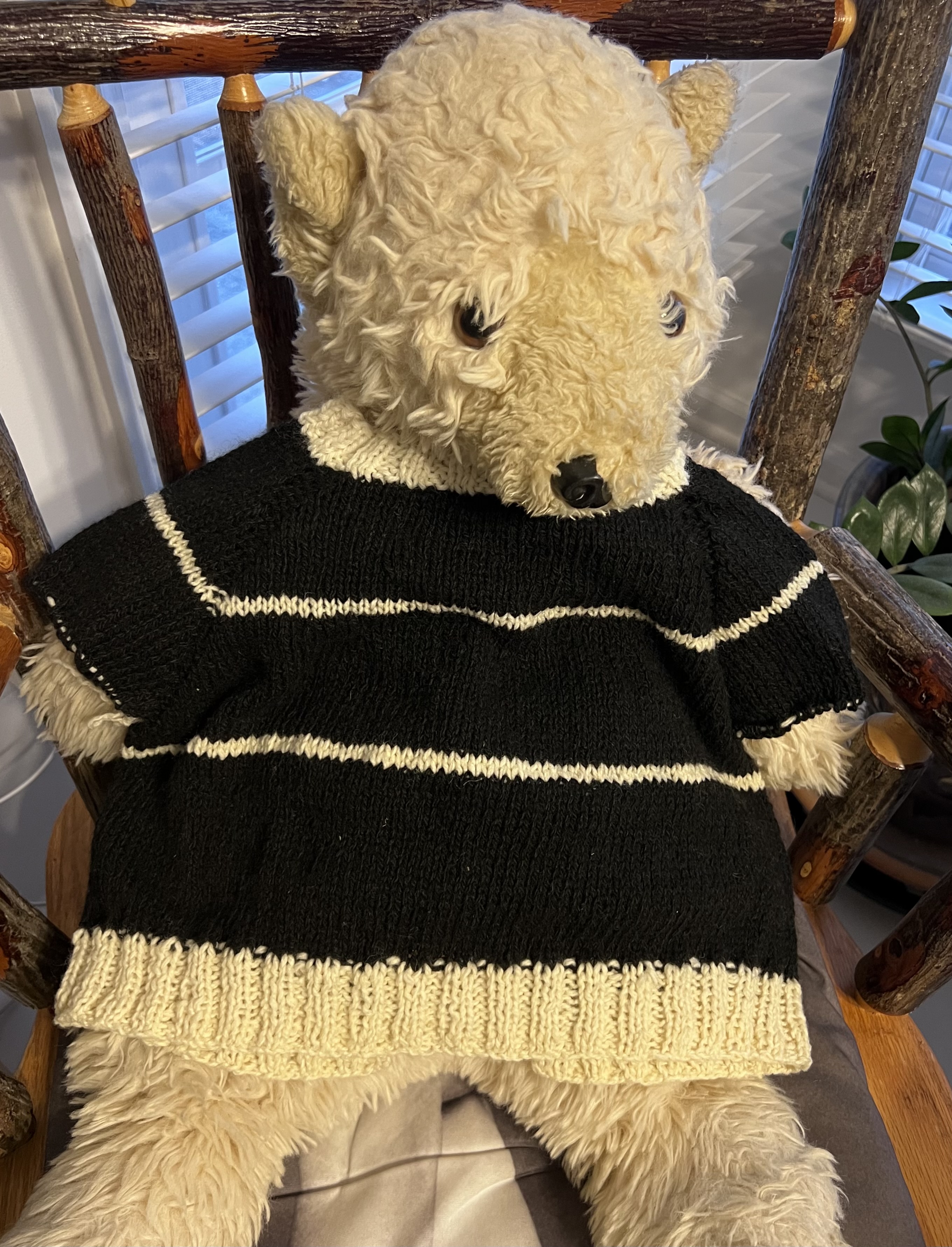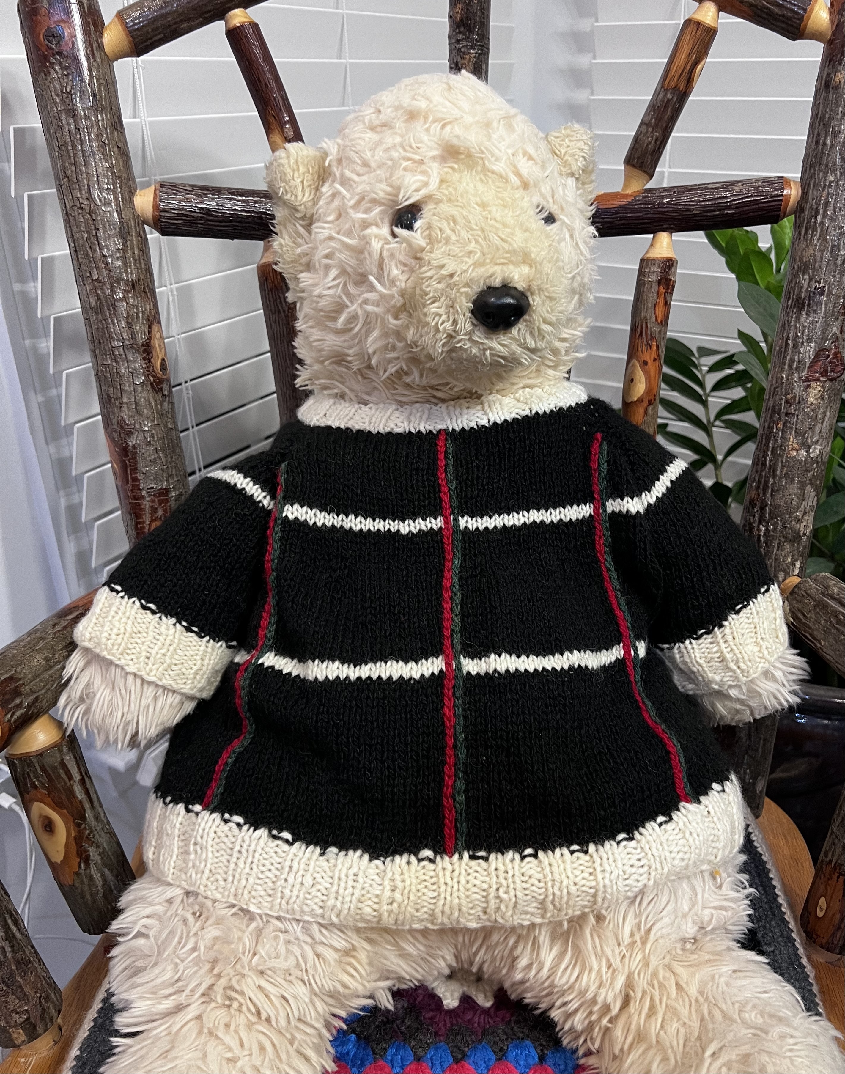 Свитер для медведя никак не закончу, руки не доходят, остались только рукава. Это Мойша, любимый медведь Кеза , а теперь Оливки. Вчера было 6 лет со дня гибели К. Помним, любим, скорбим.