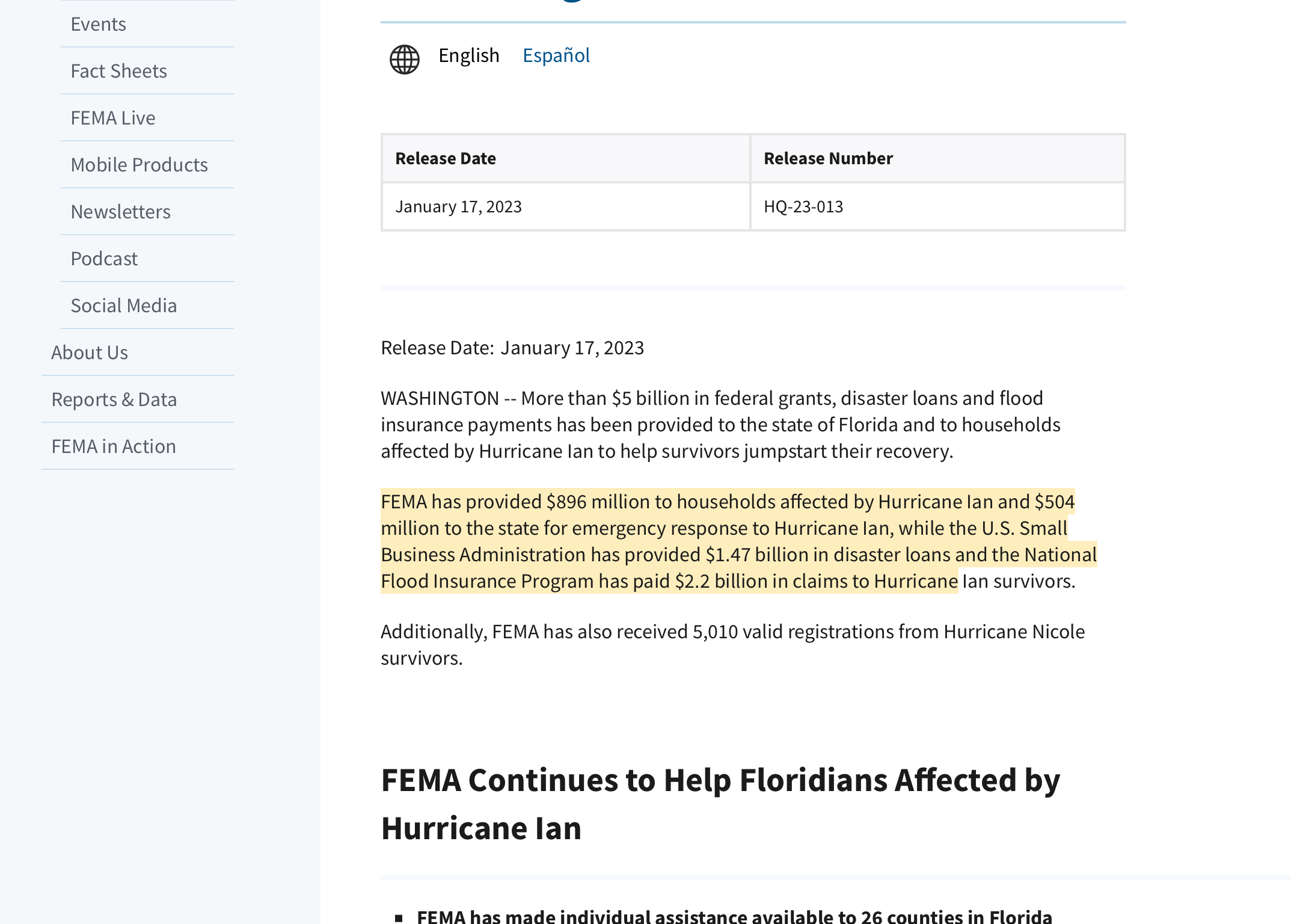 https://www.fema.gov/press-release/20230117/hurricane-ian-federal-assistance-climbs-past-5-billion-thousands-floridians