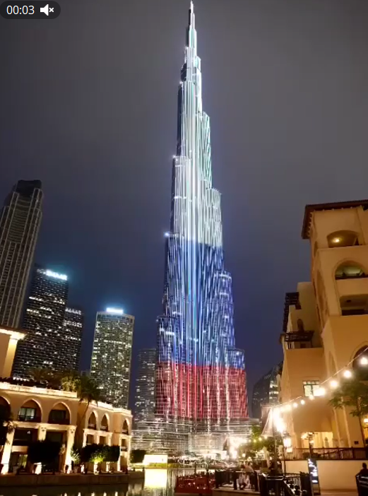 Бурдж-Халифа в Дубае подсветили в цвета флага России в знак солидарности