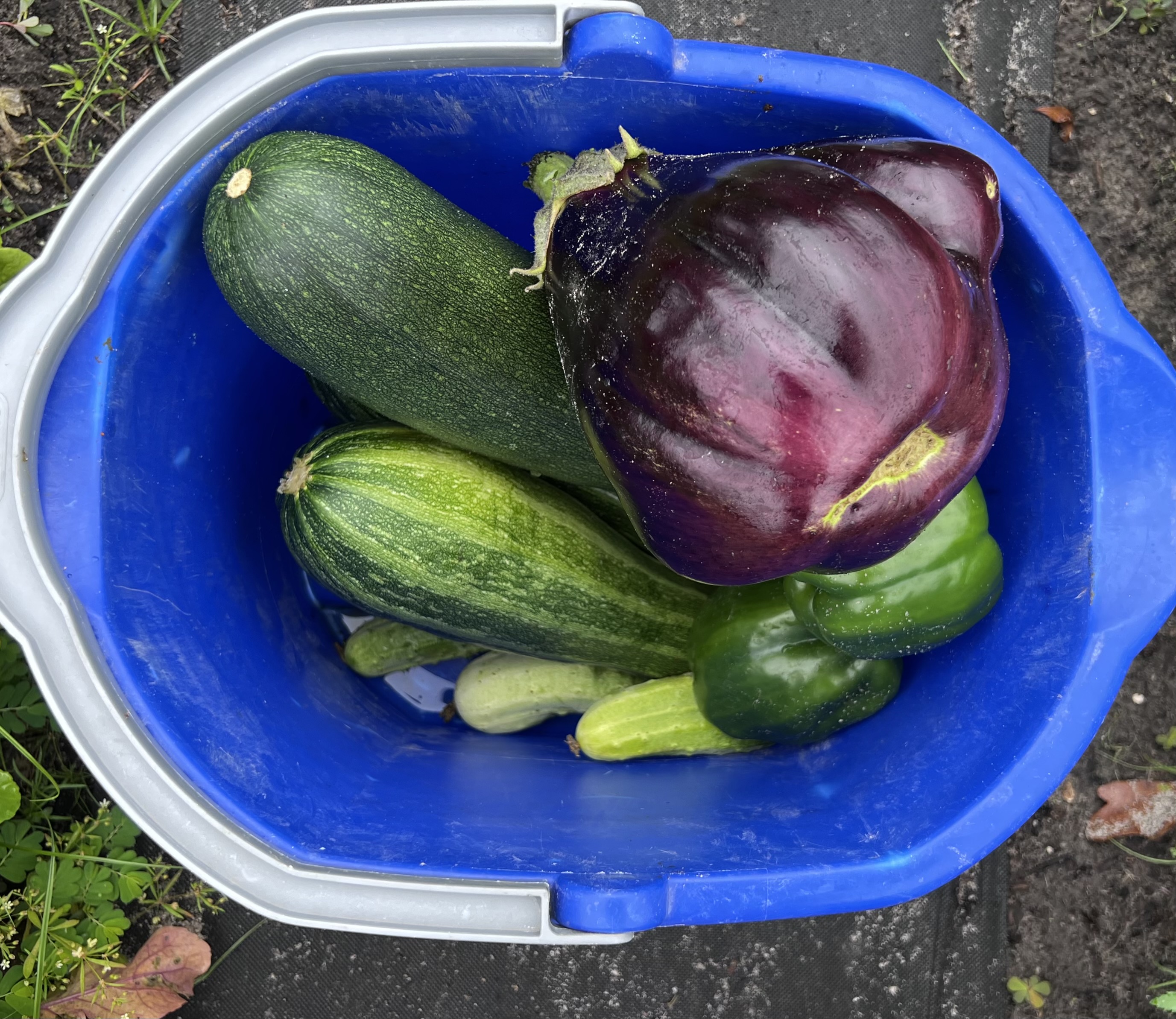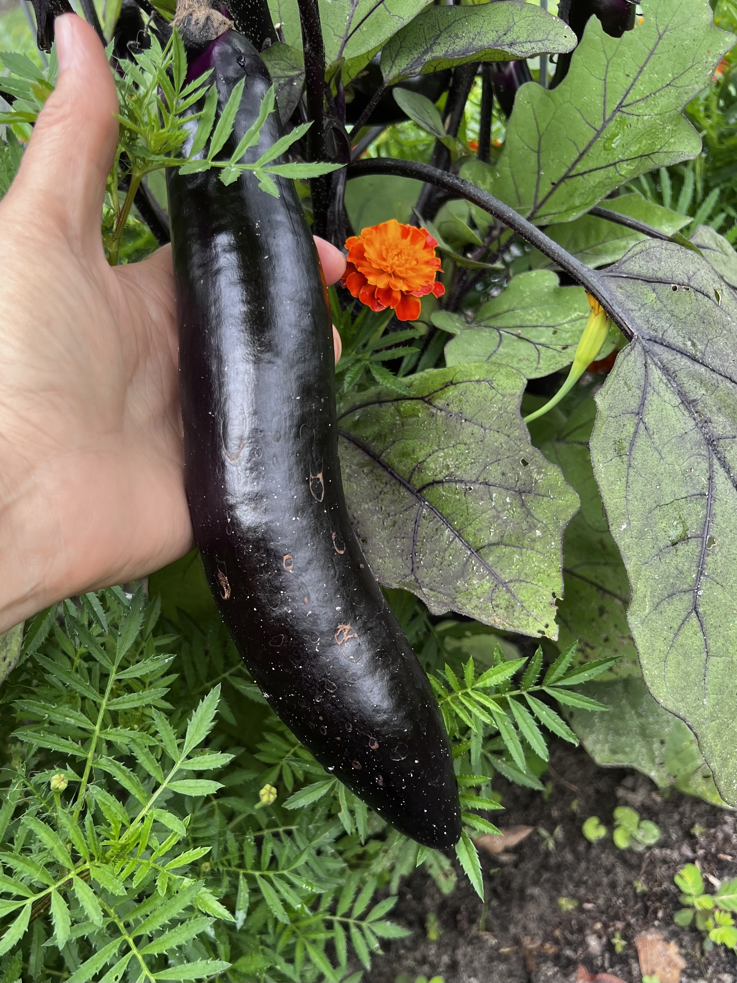 У меня баклажаны только цвести собираются, а у тебя уже такой красавчик! Цукини и огурцы понемногу срываю тоже.