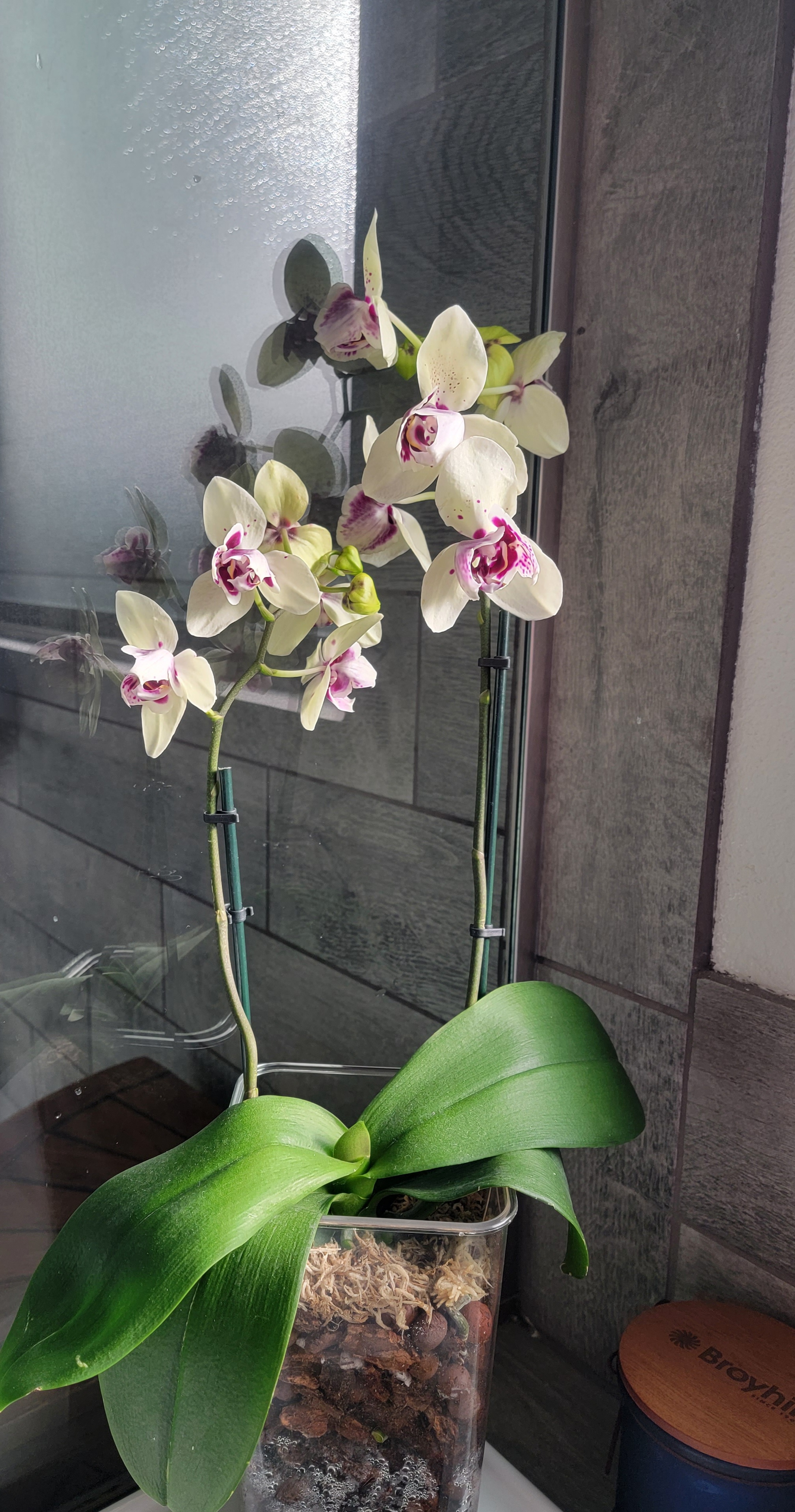 Эту орхидею фаленопсис я купила несколько месяцев назад в Лоусе. Купила, потому что пелорик (мутация цветка- нераскрывшийся тюльпан). Если увидите- берити, не задумываясь. Расскажу почему. Орхидея очень сильная. Прикинув ее потециальные возможности, пересадила в большУю пластиковую вазу. Через месяц-полтора она начала наращивать дополнительные бутончики. Да, цветок выгорает... становится молочным- ничего плохого в этом не вижу. На днях сделала открытые- новые бутончки ароматят! Второй ароматный фалик теперь у меня В реале цвет не желтый, как на фото, а фисташковый с шоколадными всплесками-разводами. Так что даже непелоричный экземпляр заслуживает внимания!