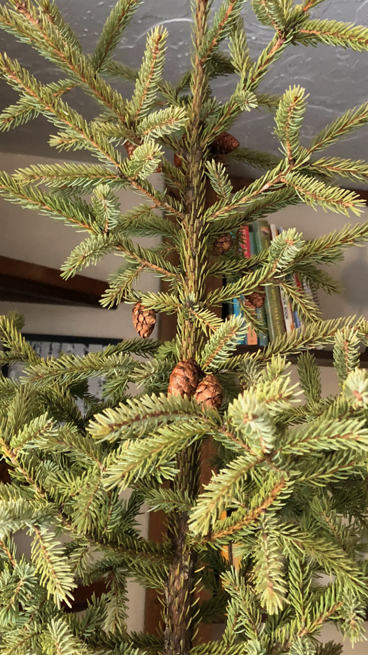 Наша елочка сегодня. Скромная, ещё пока не обзавелись бОльшим декором. Еще днём росла в нашем лесу.