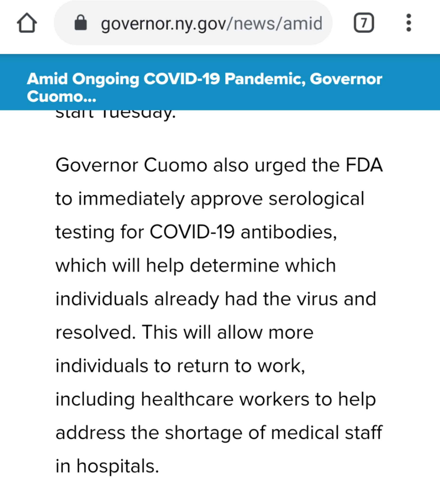 Natulik писал(а): А мне интересно, как скоро кто нибудь выйдет с идеей идентифицировать тех кто recovered, чтоб выходили из карантина и шли поднимать экономику Наш губернатор говорил об этом ещё несколько дней назад.