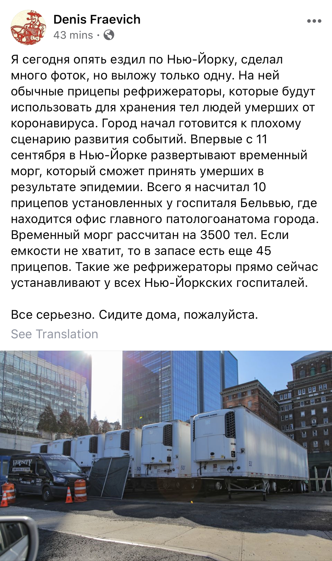 Мне сестра только позвонила Знает лично 5 людей в NY test corona и через неделю все нормально более менее Правда все 30-45 лет без хронических болезней