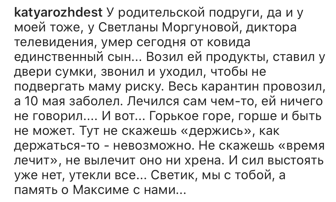 Nata_5 писал(а): А цифрам я не верю абсолютно. Что в Техасе. В нашей каунти ок 400К населения. Абсолютное большинство старики. Нерсин хоме на нерсин хоме. Тестировано в абсолютных только ок 3 тыс. Это что? Учитывая повторные для больных. Цифры типа и не растут и тут же говорят что в 3 нерсин хомах работники с короной которым не давали больничный и в тюряге местной работник с заразой ой ну надо теперь целую тыщщу тестировать по закону. Запрятали и все дела. На 10 множить надо минимум. Это точно, про тестирование. Вернее, про нетестирование. Степка (группа риска - рак) в прошлом месяце в Остине попала в госпиталь с высокой температурой. Тестировать не стали.  Все эти цифры вообще не о чем. В той же России уже сколько сообщений о смерти известных людей или их родственников, чего скрыть сложно. А общие цифры все равно низкие. Все скрывается - и тут, и там.