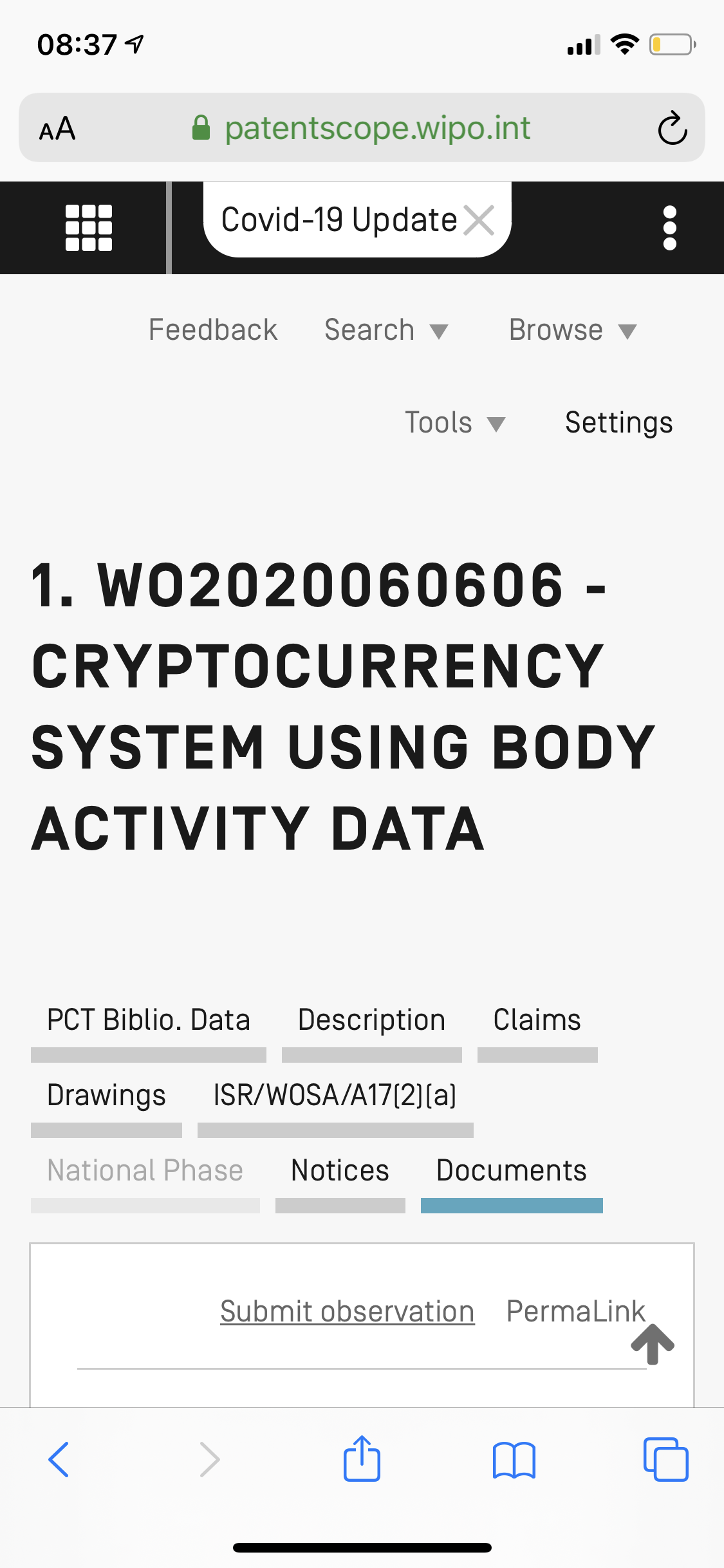 В патенте, в частности, говорится, что: «Деятельность человеческого организма, связанная с поставленной перед пользователем задачей, может быть использована в процессе майнинга криптовалюты».