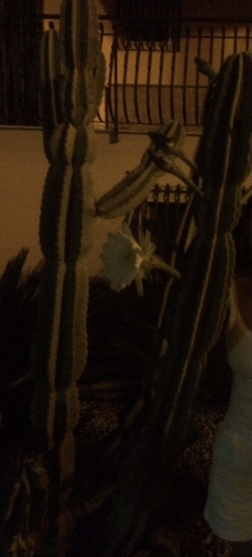 Вот что ещё: вот такой красивый кактус, который цветёт только ночью увидела и подумала о Вас:) фото прилагаю, стою рядом, чтобы размер кактуса подчеркнуть. сори за качество: «ночь, улица, фонарь», айфон.