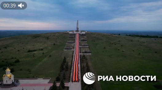 Георгиевскую ленту длиной 300 метров развернули на мемориальном комплексе Саур-Могила в ДНР