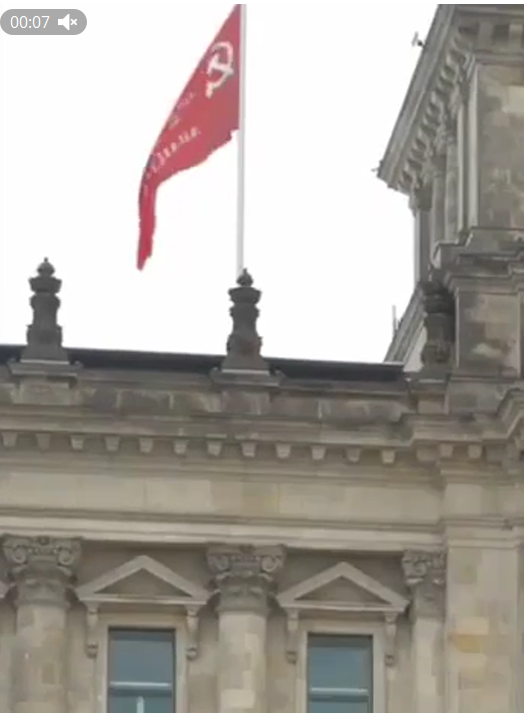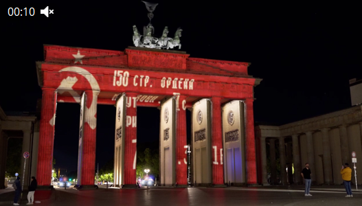 И еще "В Берлине этой ночью кто-то взломал проекцию на бранденбургские ворота и спроецировал на них Знамя Победы. Полиция Германии начала проверку."
