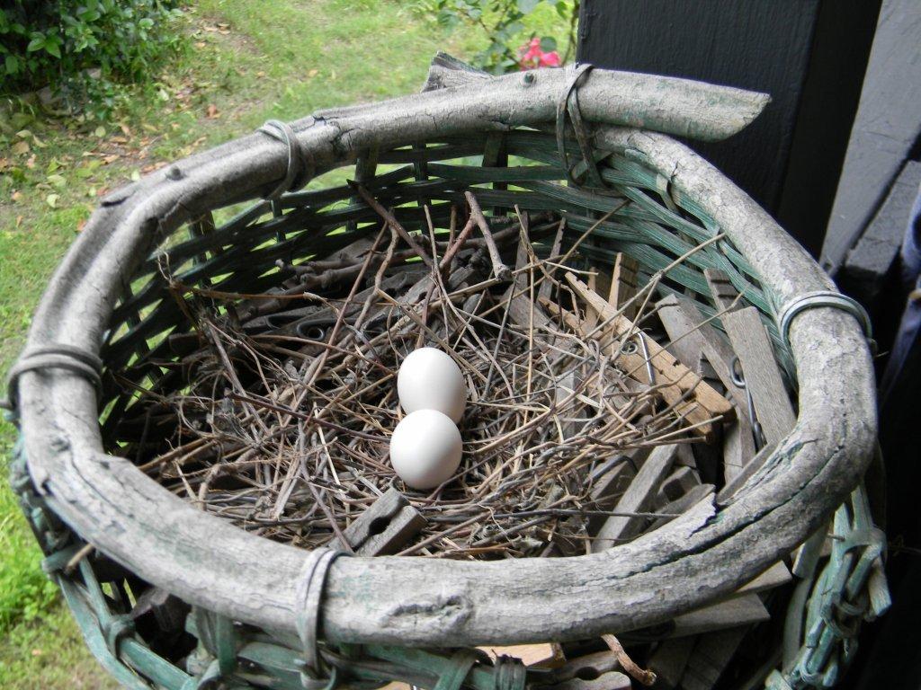 Продолжение фоторепортажа. Это наши будущие птенчики. Надеюсь, что смогу опубликовать фото с ними позже. Но уж место родители выбрали очень неподходящее - у нас кошек нет, но любая заблудшая может достичь это гнездо в два прыжка.