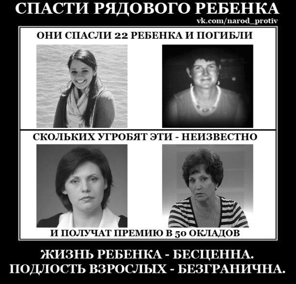 Sollaria писал(а): Kabuki, а про что картинка, не поняла смысла? На картинке в верхнем ряду учительницы, которые отдали свою жизнь ради спасения детей во время стрельбы в начальной школе. В нижнем ряду Лахова и Афанасьева, авторы поправки к закону о запрете усыновления американцами русских детей.