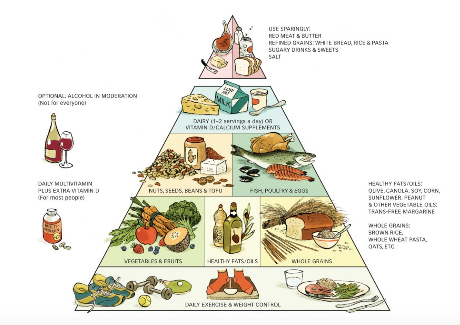 https://www.hsph.harvard.edu/nutritions ... ing-plate/ Я именно так и питаюсь, как они советуют. Кто боится хол грейнс, кто молочки, но нашим клеткам нужны витамины, микроэлементы и прочее, которого именно в этих продуктах полно