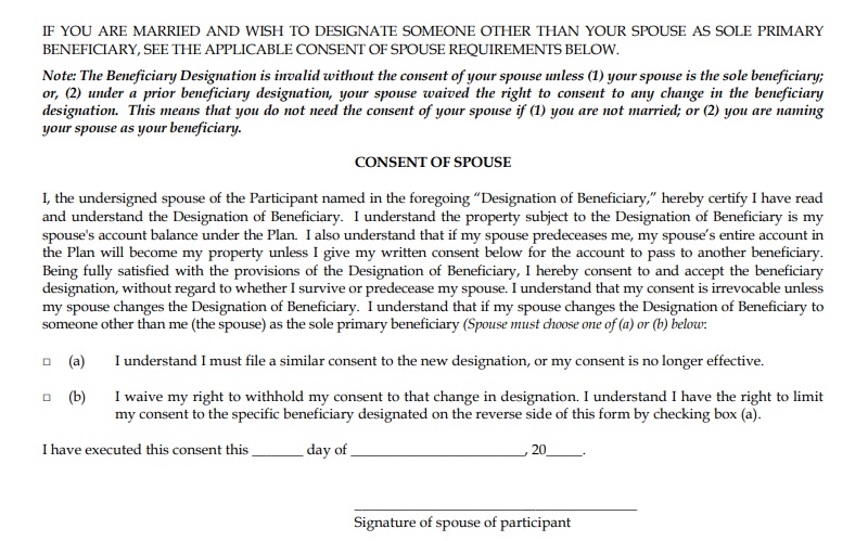 Вот эта часть, где написано, что если бенефициарий - не жена, то жена должна подписать согласие на это в присутствии нотариуса, и должна acknowledge another beneficiary - я подписывала дома, не в присутствии нотариуса, и ни о каком конкретно другом бенефициарии мне рассказано не было.