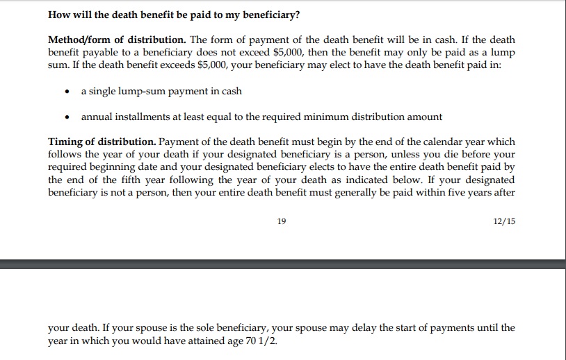 SantaMonica писал(а): lena 45 писал(а): женщина писал(а): Альтея, я не хочу вас никак обидеть , мне вас очень жалко и я бы не желала кому либо быть в такой ситуации особенно с подростком и молодой женщине . Я боюсь , я не знаю , но думаю , что муж мог не записать вас в бенефициары и тогда вы вряд ли , что либо получите от его сошиал и пенсию . Работодатель не имеет права вам отказывать в получении документов , вы его жена . Вы ходили в сошиал сервиз ? Очень часто , когда есть первый брак, то записывают жену, а когда разводятся, все недосуг переоформить. Если Алтея не помнит, что муж ей говорил- Переоформил свой 401 на тебя, то вполне возможно, он все еще записан на первую семью. Они лет 15 женаты были и все недосуг переоформить? И даже после прошлогоднего инфаркта недосуг? И альтея не спросила? Ну почему же. Бумаги какие-то подписывались сколько-то лет назад, я не помню точно как давно, но по моим представлениям давно. Муж объяснял, что подписываю для того, чтобы могла получить его 401К. Он был не такой человек, который играет в игры. Привожу выдержку из бумаги (незаполненную), сам документ у нас на компе есть. Как-то очень мутно написано. Я не очень хорошо понимаю.