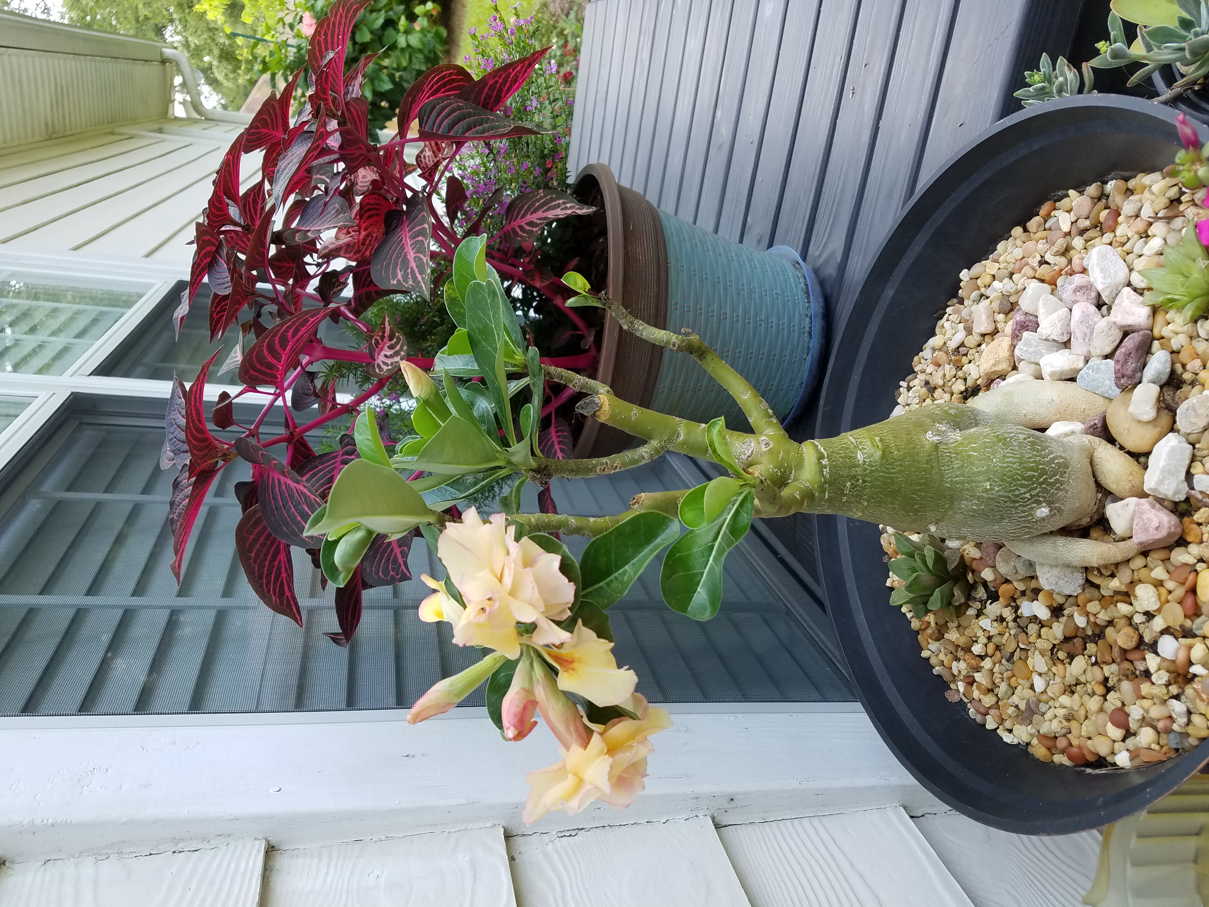 Мелисса, адениумы совсем не капризные!. Какие цветкие обалденные- дабл пинк А вот с каудексом засада... но если оставить так- тоже прикольно получится! Можно попробовать выравнять: углубить каудекс наполовину, обрезать ветки и не допускать отклонений от вертикального роста