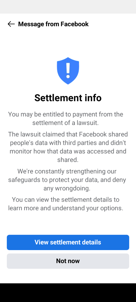 Primula писал(а): How to Claim Your Share of Facebook’s $725 Million Privacy Settlement Anyone who had a U.S. Facebook account between May 2007 and December 2022 is eligible to apply, though payouts are likely to be small. https://www.nytimes.com/2023/04/20/business/facebook-settlement-apply.html Page Not Found