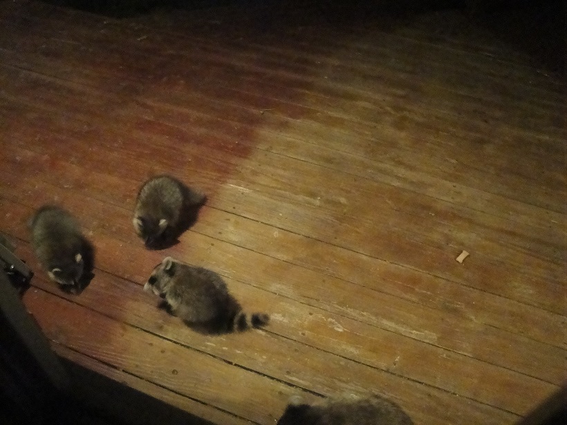 А потом наша енотиха неподалеку от нашего дома родила детенышей и стала водить строем к нам под дверь и скрестись, их 6 или 7 было, уже не упомню, пришлось и эту ораву кормить))) Огребли себе забот на все лето)))