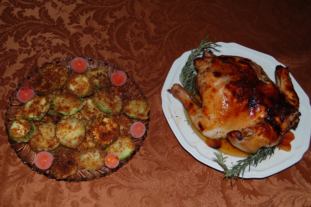 целую курицу люблю делать на соли (паунд или два соли распределяем на протвинь и на него курицу разрезанную по брюху) на 400Ф минут на 45 (и вообще для лучшей корочки, курицу можно натереть немного солью (шкурку) и забыть в холодильнике на часа 2-3, тогда кожа запечется очень хрустяще) а ещ] для любителей куриных грудок (или бедрышек) мой любимый рецепт (пардон на англише) Oven Roasted Teriyaki Chicken 1 tablespoon cornstarch 1 tablespoon cold water 1/2 cup SPLENDA® No Calorie Sweetener, Granulated (можно сахар, я так и так делала) 1/2 cup soy sauce 1/4 cup cider vinegar 1 clove garlic, minced 1/2 teaspoon ground ginger 1/4 teaspoon ground black pepper в рецепет оригинальном нужно брать бедра без кожи, я люблю куриные грудки или бедра с кожей, они запекаются так лучше мне так кажется In a small saucepan over low heat, combine the cornstarch, cold water, SPLENDA® Granulated Sweetener, soy sauce, vinegar, garlic, ginger and ground black pepper. Let simmer, stirring frequently, until sauce thickens and bubbles. Preheat oven to 425 degrees F (220 degrees C). Place chicken pieces in a lightly greased 9x13 inch baking dish. Brush chicken with the sauce. Turn pieces over, and brush again. Bake in the preheated oven for 30 minutes. Turn pieces over, and bake for another 30 minutes, until no longer pink and juices run clear. Brush with sauce every 10 minutes during cooking. к этим грудкам обычно готовлю Hot and Sour Chinese Eggplant 2 long Chinese eggplants, cubed )беру обычные наши сининькие 1 1/2 tablespoons soy sauce 1 tablespoon red wine vinegar 1 tablespoon white sugar 1 green chile pepper, chopped (можно не использовать) 1 teaspoon cornstarch 1/2 teaspoon chili oil, or to taste (я использую сесами ойл) 2 teaspoons salt 2 tablespoons vegetable oil