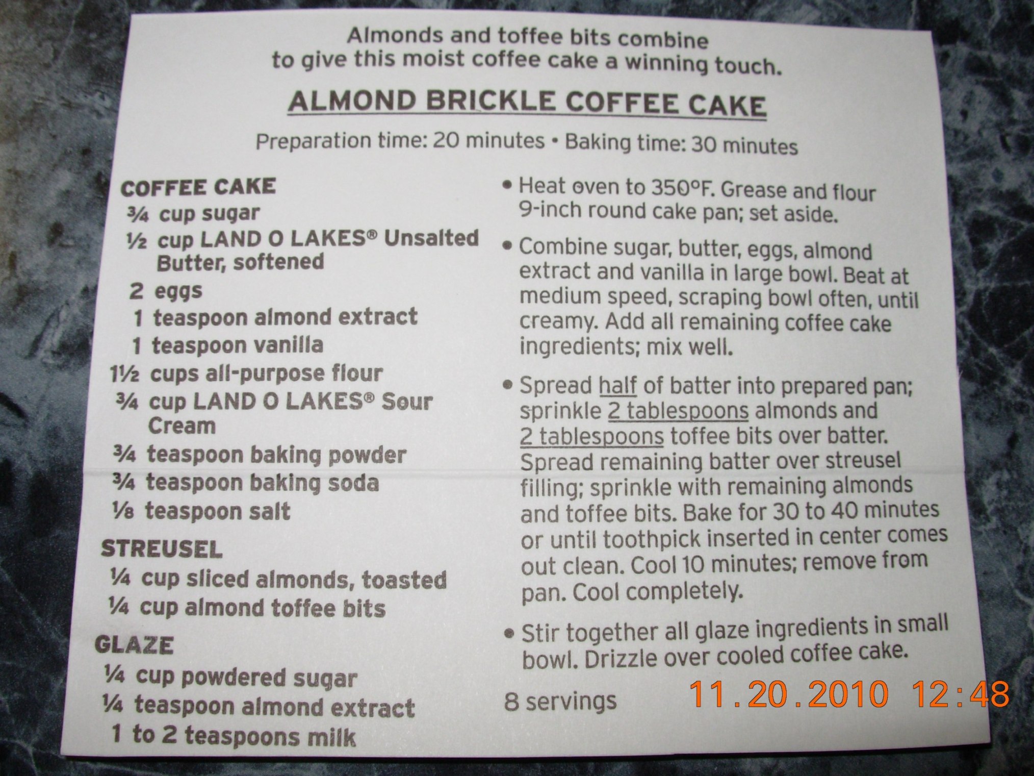 делюсь своим рцптом который нашла на упаковке с маслом...land o Lakes unsalted мне понравилась текстура, очень нежный пирог, особенно когда теплый, готовиться несложно на мой взгляд. если стаить в холодильник на ночь, но обязательно разогрейте в микроволновке на пару сек, чтобы был теплый при подаче. простите за рецепт, не охота было печатать