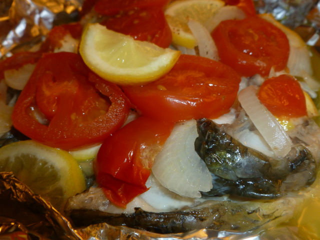 miss_sunshine писал(а): рыба получается шикарно если следовать очено простому рецепту - целую тушку (можно разрезать на крупные куски) почистить, отрезать хвост, плавники и голову. Из специй - сольк перец (можно грошком) ИЛИ old bay - с ним ничего дополнительного не надо. Лук репчатый полукольцами, помидоры тонкими колечками, лимон тонкини ломтиками - все это укладываете равномерно - снизу, внутри рыбины и сверху - можно любимой зеленью посыпать + несколько кусочков сливочного масла - в животик рыбке и наверх. Плотно закрываете фольгу карманчиком - то есть не кладете рбу в форму а потом закрываете, а кладете рыбу на фольгу и потом заворачиваете ее карманчиком -и все в духовку до готовности - пальчики оближешь и ум отъешь! не получится просто не может такой рецепт! Я до того, как ваше сообщение увидела, в интернете нашла этот рецепт. Приготовила. Муж был в восторге! http://www.foodnetwork.com/videos/giada ... 85273.html Рецепты, кстати, очень похожи.