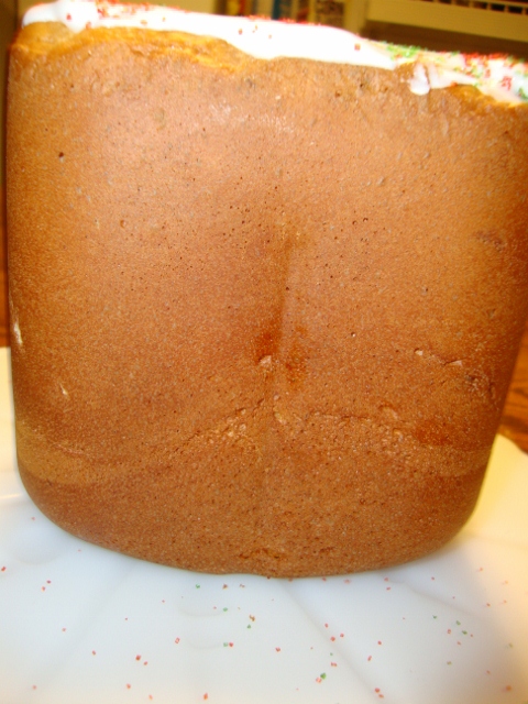 milk 1/4 cup 2 аggs 3 Tbsp buter 3 TBsp shugar 1/2 tsp salt 1 tsp lemon peel 1 tsp vanila 2 cups bread flour 2 tsp yeast 1/4 cup raisins Кто-то из девочек выкладывал в этой теме. Единственное, что я изменила, положила больше масла и делала опять же на сыворотке. Получилось очень вкусно.  Мы уже так напробовались куличей за дни моих проб, что в Воскресенье не захотим, наверное.