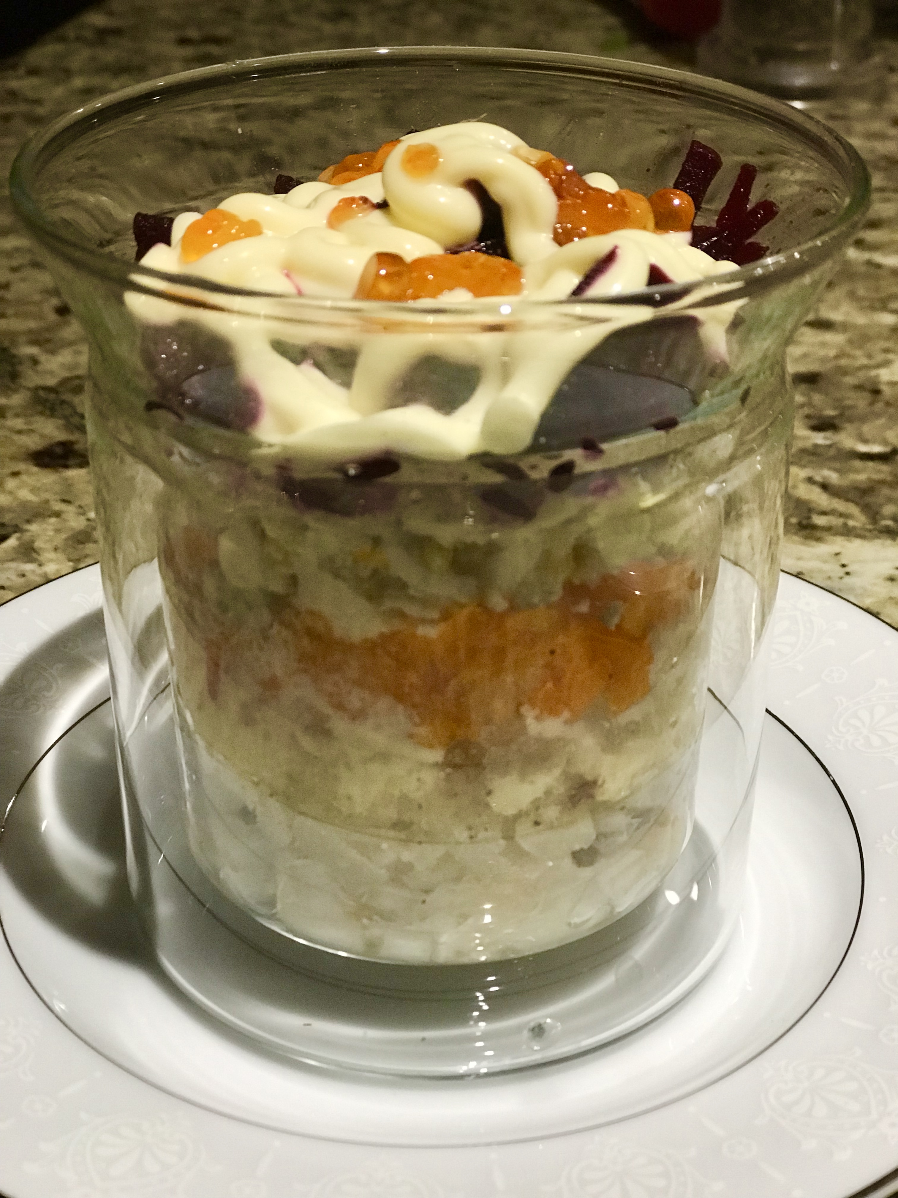 Новогодняя закуска - селедка под шубой стиль модерн https://www.koolinar.ru/recipe/view/121638