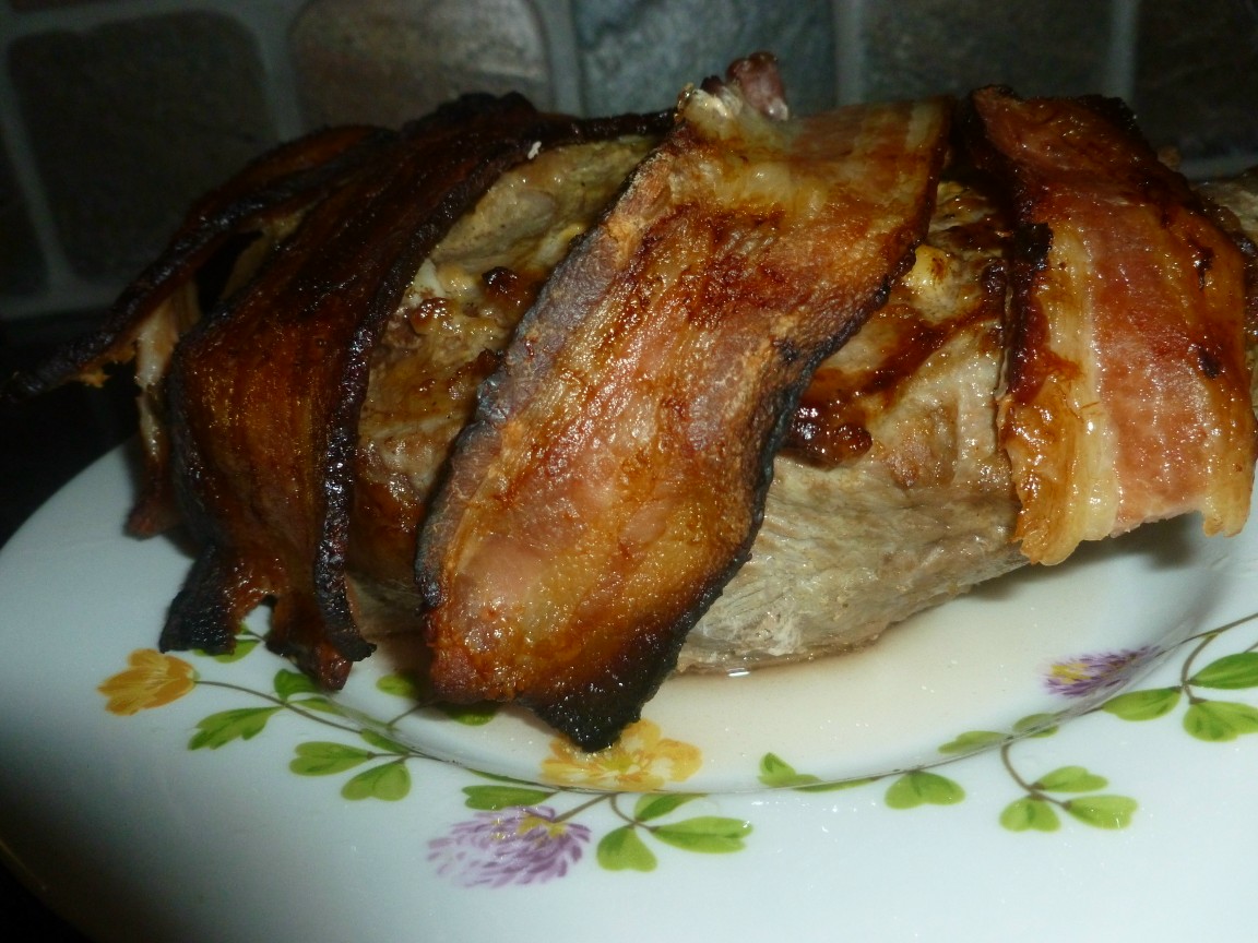 Чья-то,это говядина.Я замариновала в горчице с чесноком.А потом решила рецепт поискать и нашла так как я сделала.Интересно http://webspoon.ru/receipt/govjadina-za ... -s-bekonom