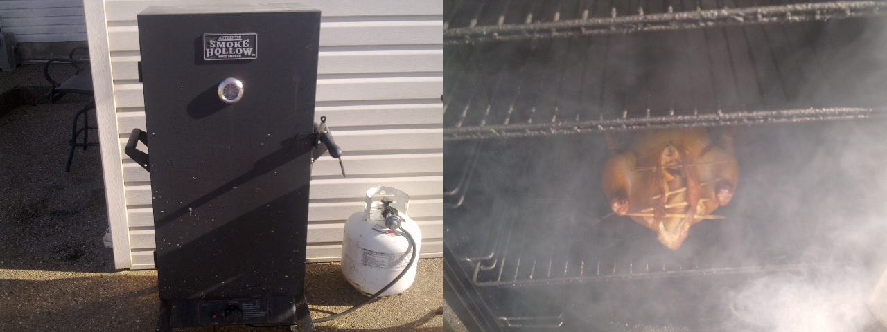 тут обсуждали ужо смокер кукинг) вот щас готовлю курицу она 4 ночи вымокала в рассоле потом я ее начинила яблоком и априсливой(завалялись фрукты в холодильнике) и в смокер. на 3 часа. начиная с 300ф и сбавляя температуру до 200 и ниже фотки порнографические